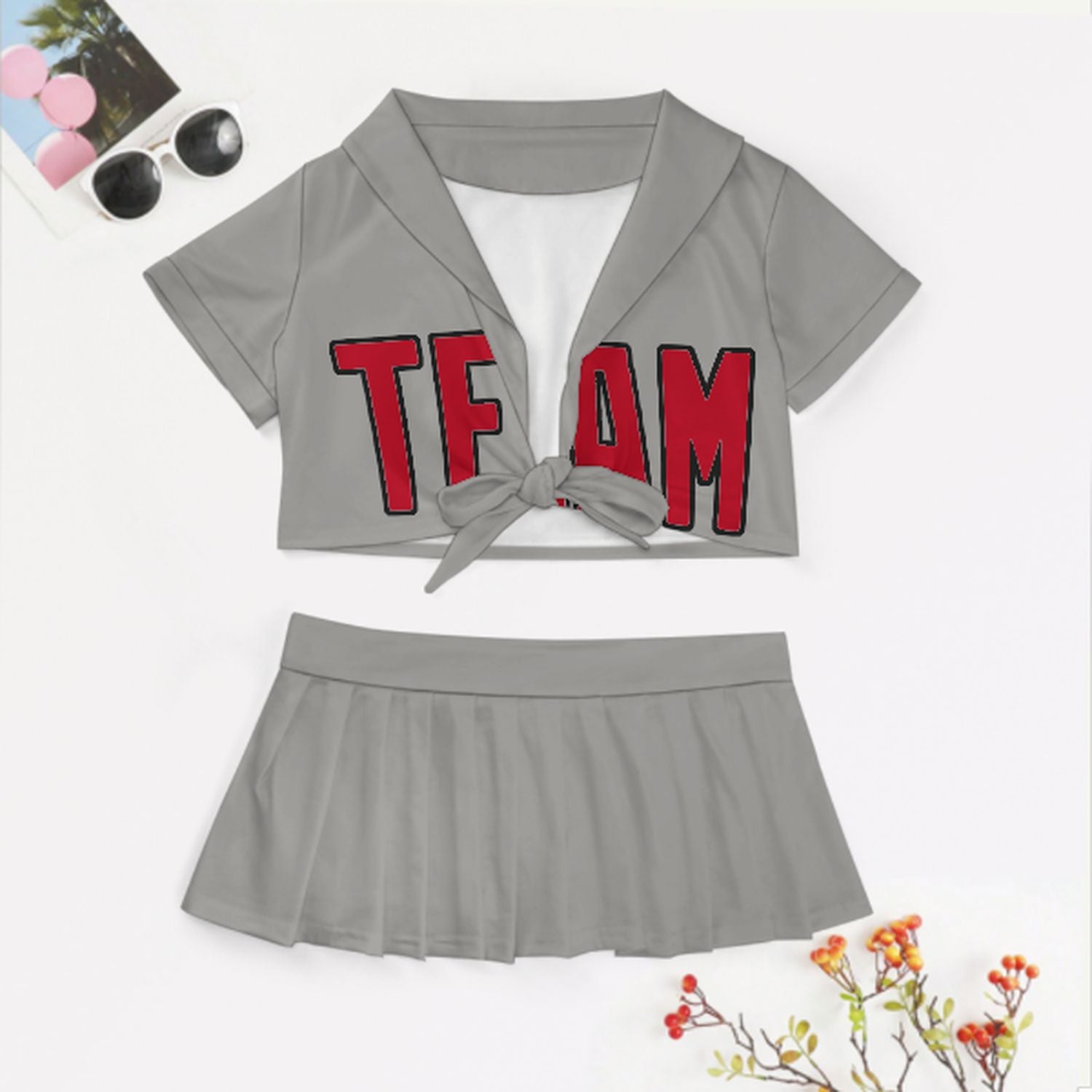 Maßgeschneidertes Grau Rot Cheerleader Outfit Set
