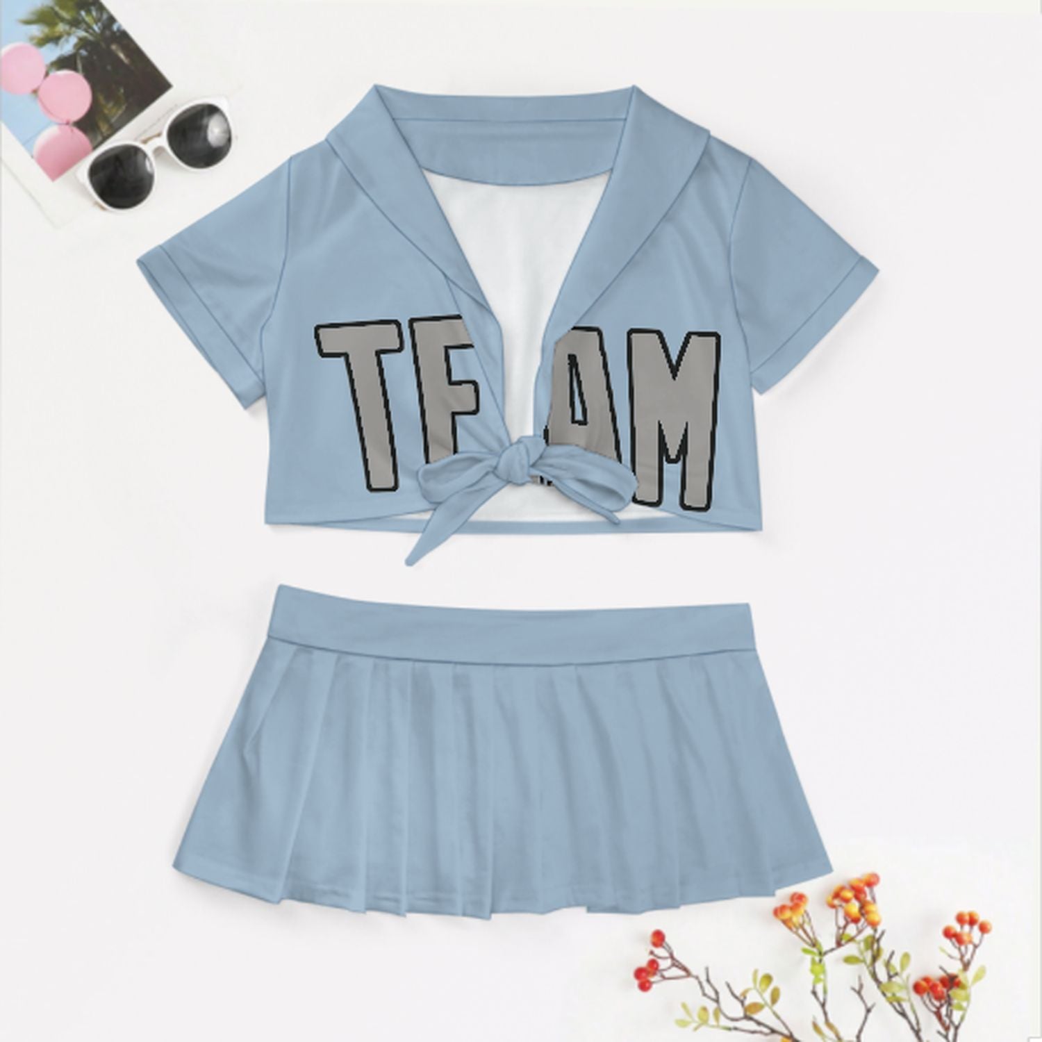 Maßgeschneidertes Hellblau Grau Cheerleader Outfit Set