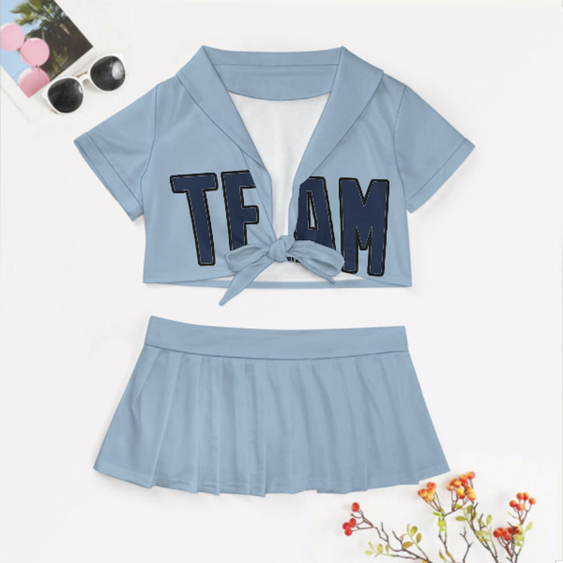Maßgeschneidertes Hellblau Marineblau Cheerleader Outfit Set