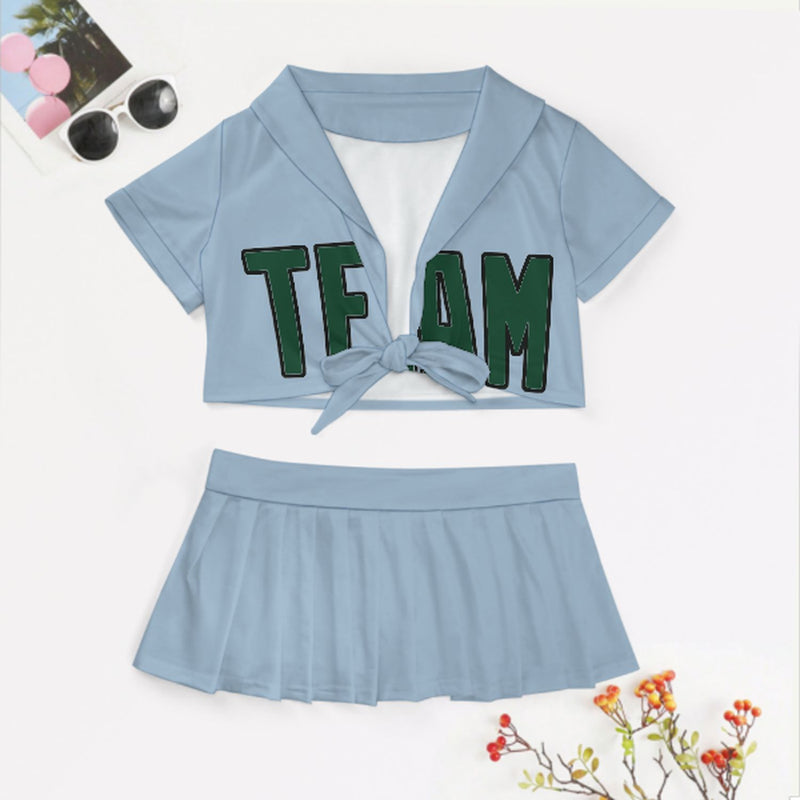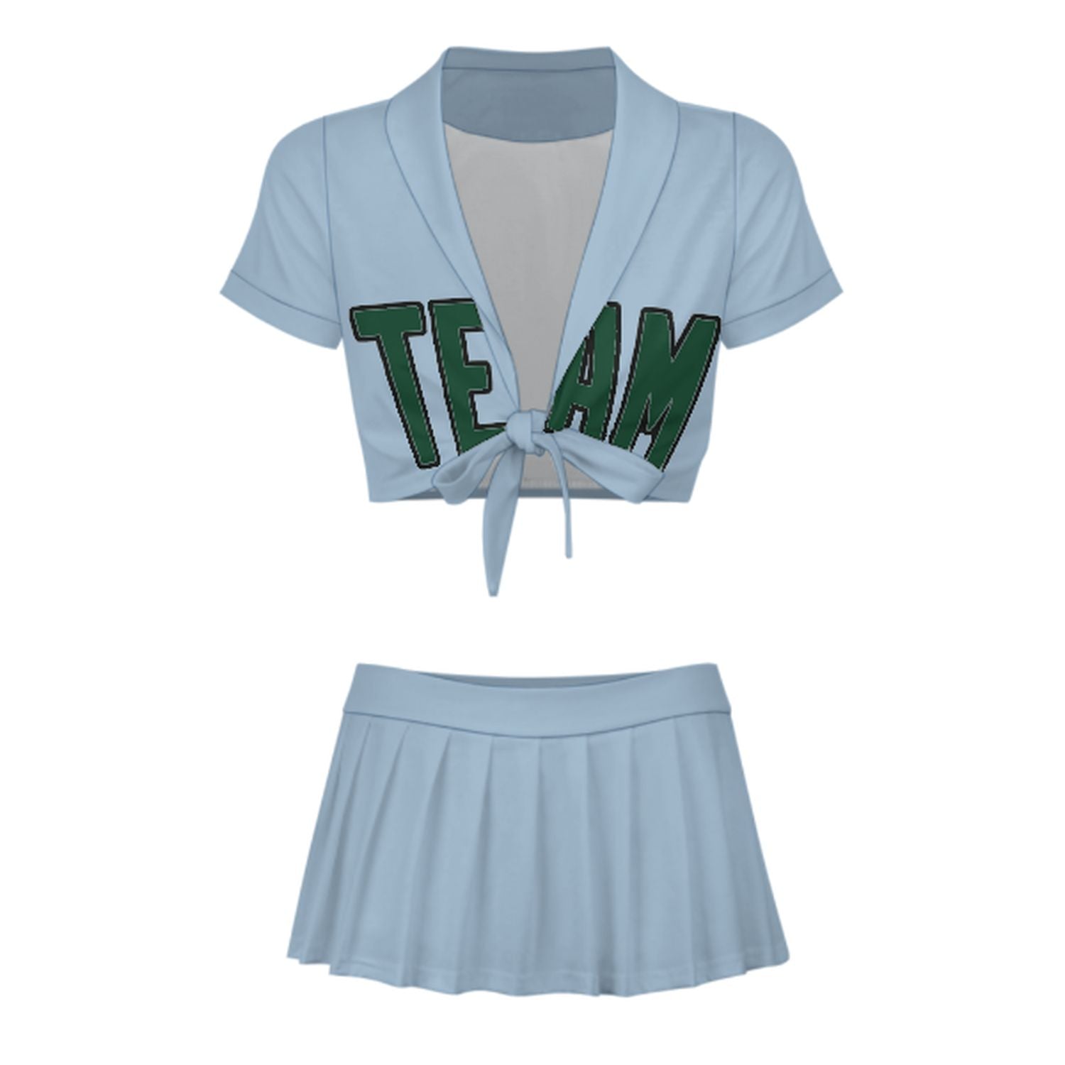 Maßgeschneidertes Hellblau Moosgrün Cheerleader Outfit Set