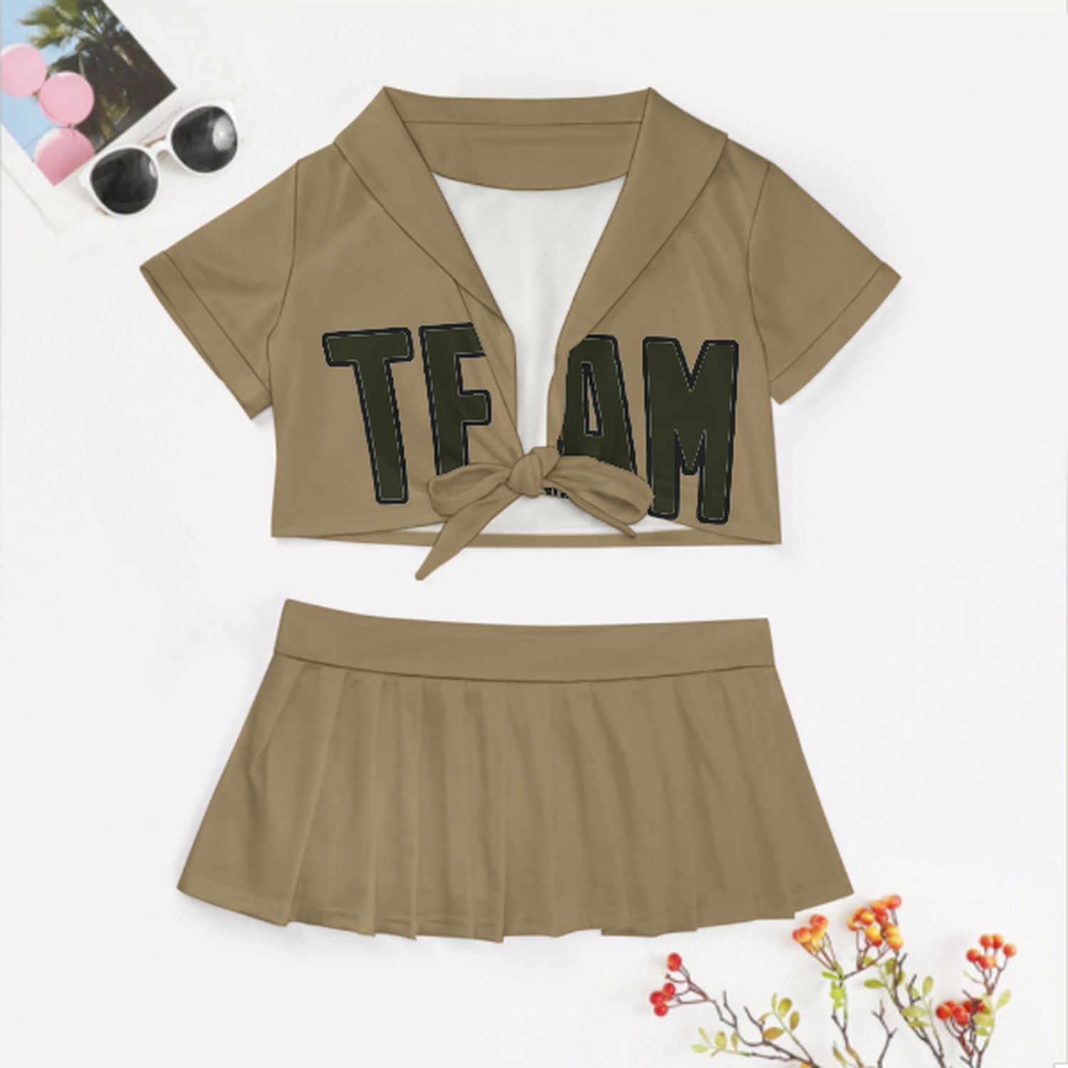 Maßgeschneidertes Hellkhaki Dunkles Oliv Cheerleader Outfit Set