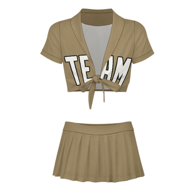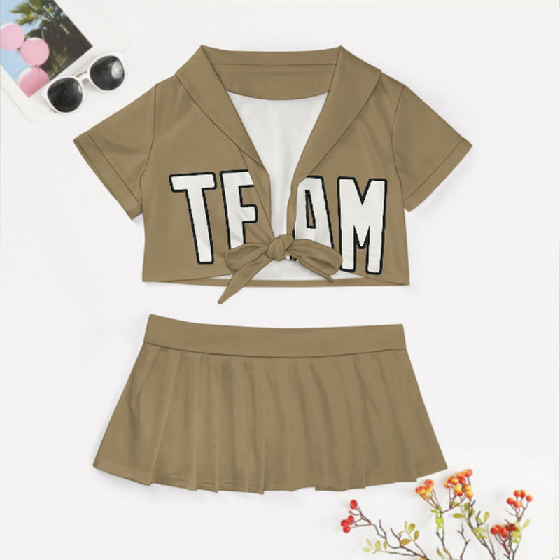 Maßgeschneidertes Hellkhaki Weiß Cheerleader Outfit Set