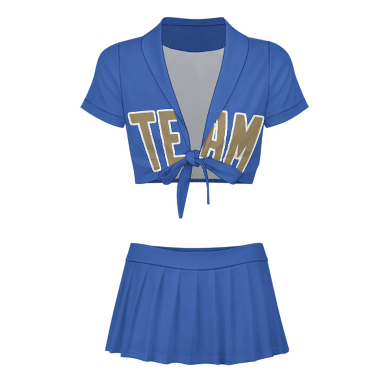 Maßgeschneidertes Himmelblau Hellkhaki Cheerleader Outfit Set