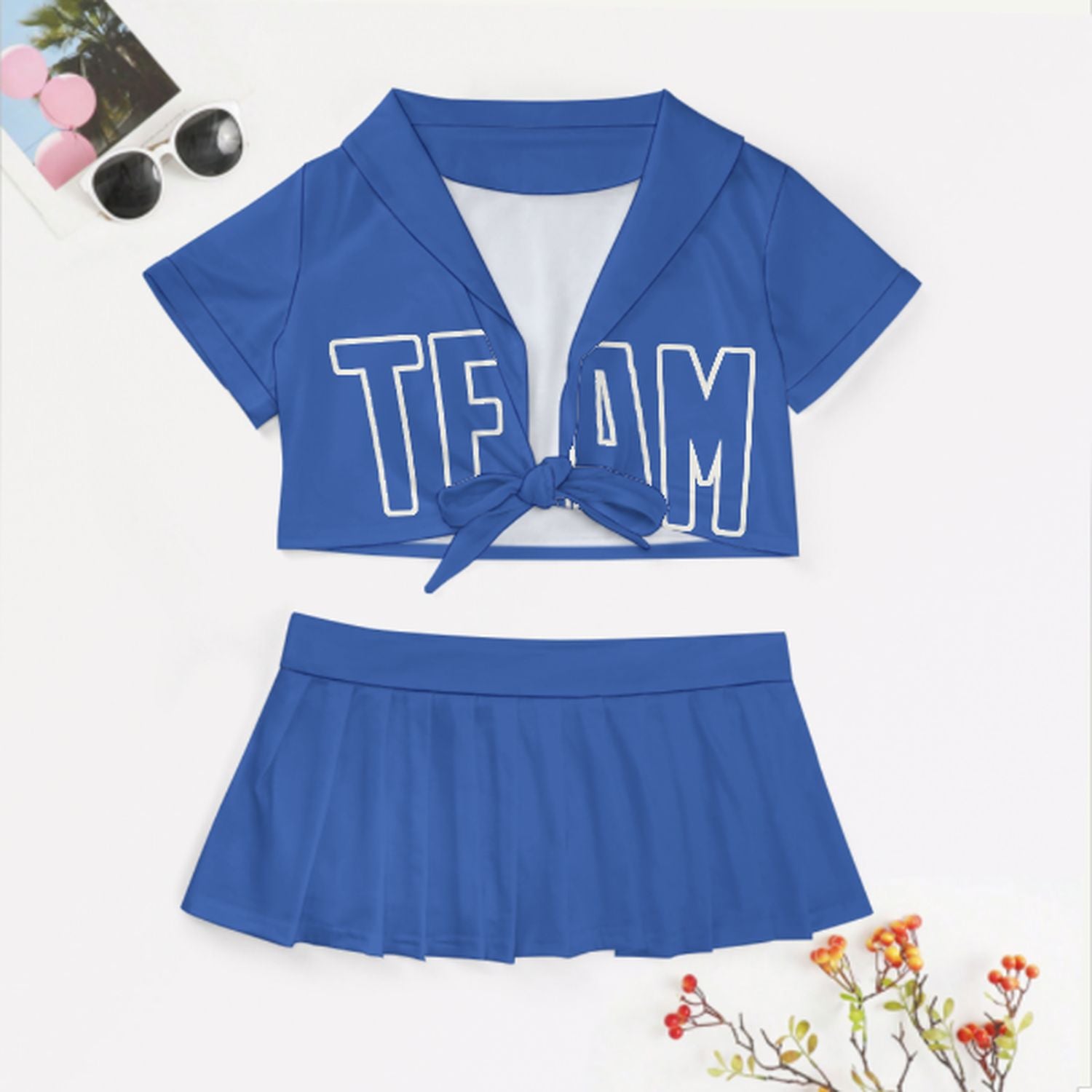 Sportliches und feminines Cheerleader Outfit Set aus atmungsaktivem Polyester mit figurbetontem Schnitt, ideal für Auftritte, Partys und Geschenke.