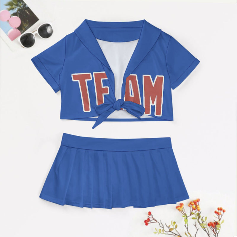 Maßgeschneidertes Himmelblau Kupferrose Cheerleader Outfit Set