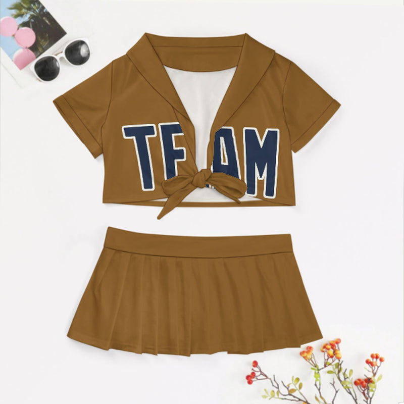 Maßgeschneidertes Khaki Marineblau Cheerleader Outfit Set