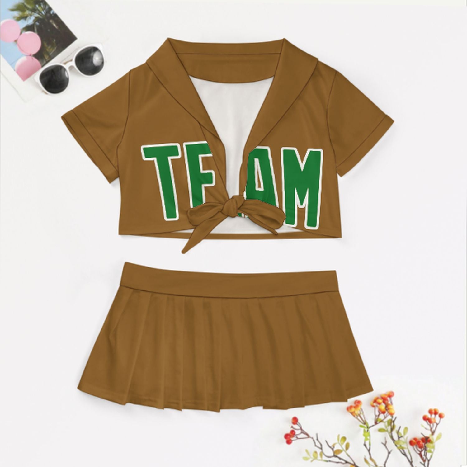 Maßgeschneidertes Khaki Smaragdgrün Cheerleader Outfit Set