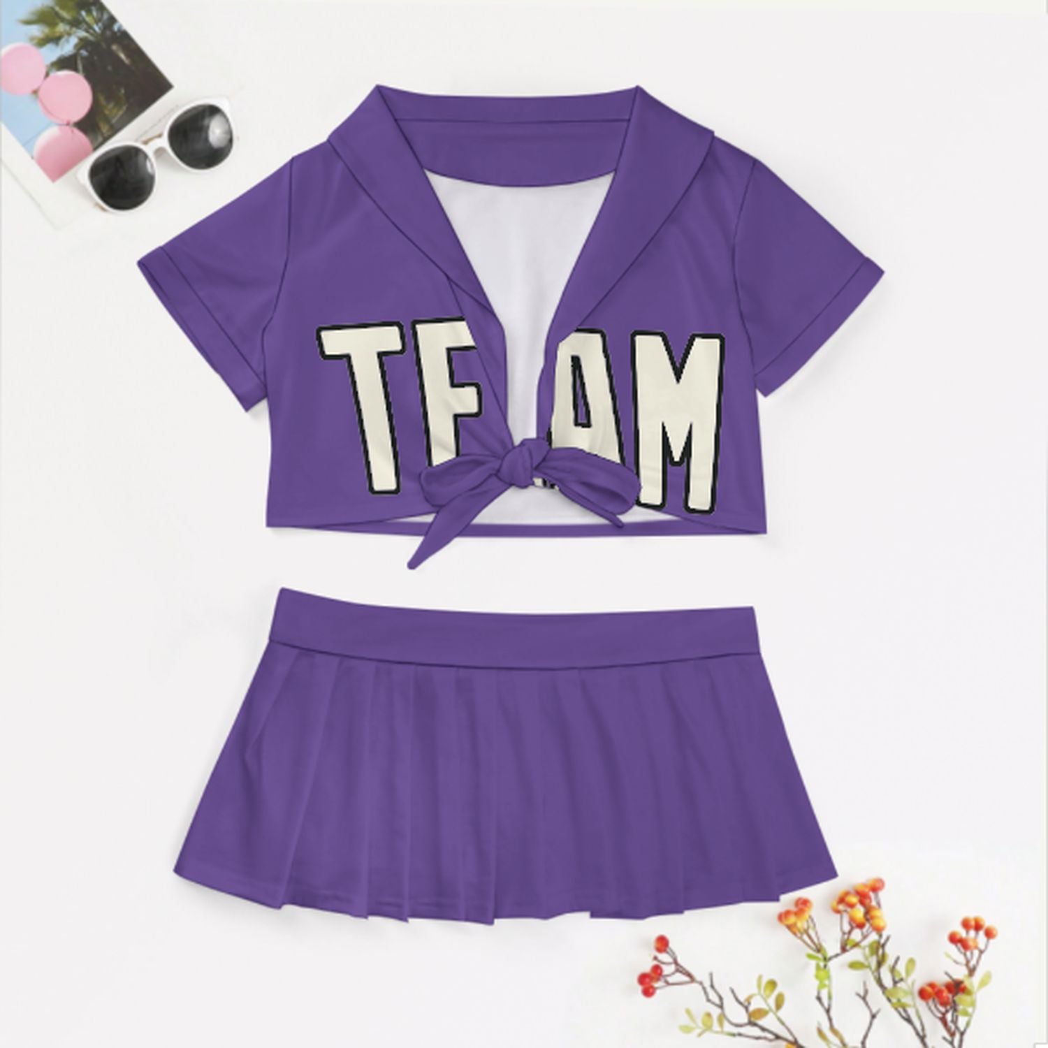 Sportliches und feminines Cheerleader Outfit Set aus atmungsaktivem Polyester mit figurbetontem Schnitt, ideal für Auftritte, Partys und Geschenke.