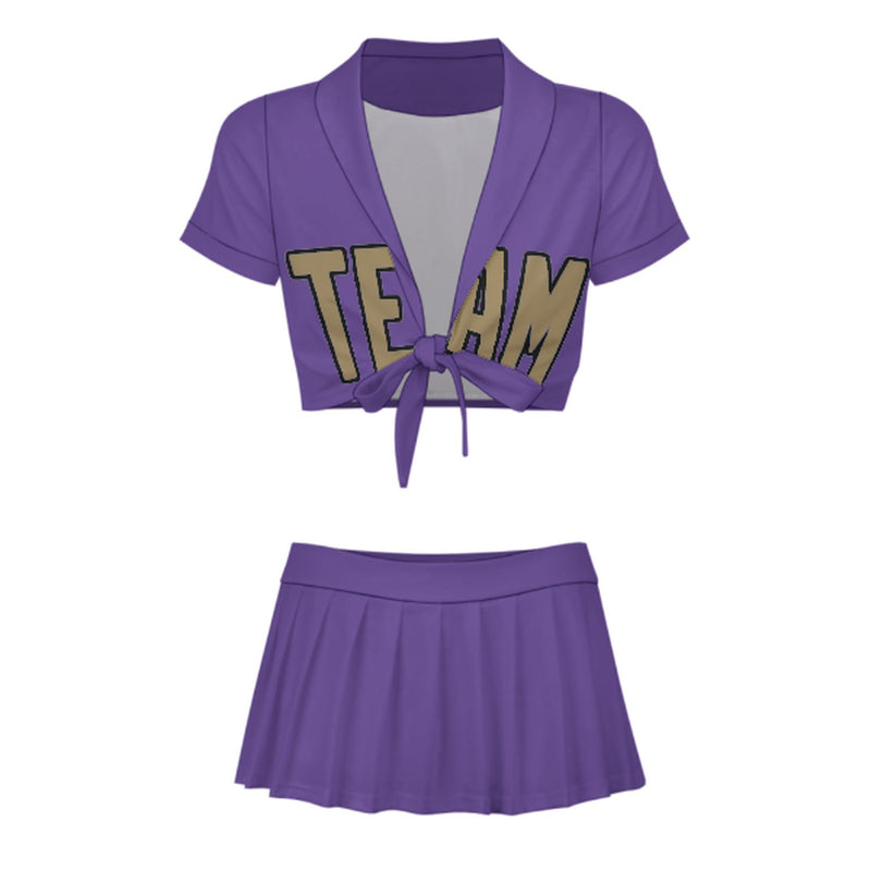 Maßgeschneidertes Lavendel Hellkhaki Cheerleader Outfit Set