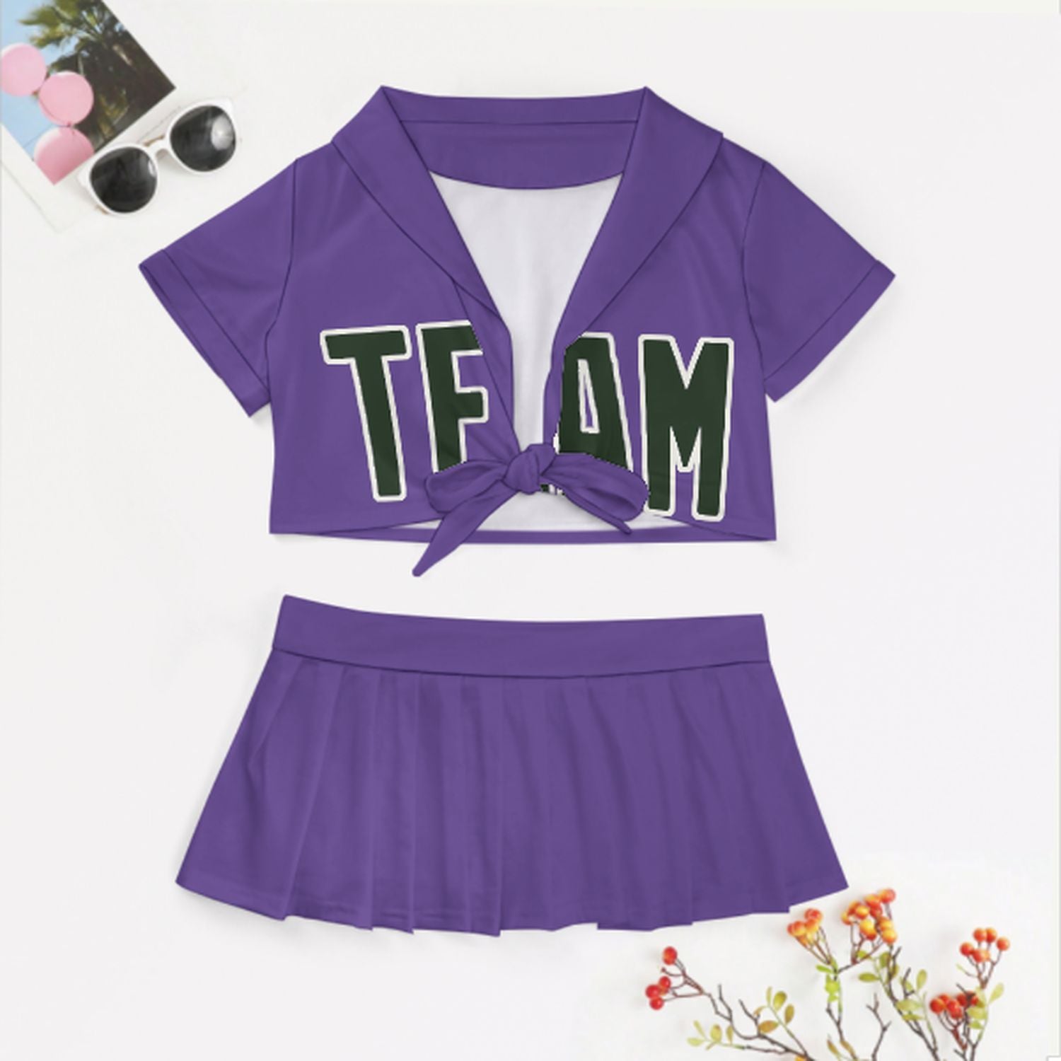 Maßgeschneidertes Lavendel Tannengrün Cheerleader Outfit Set