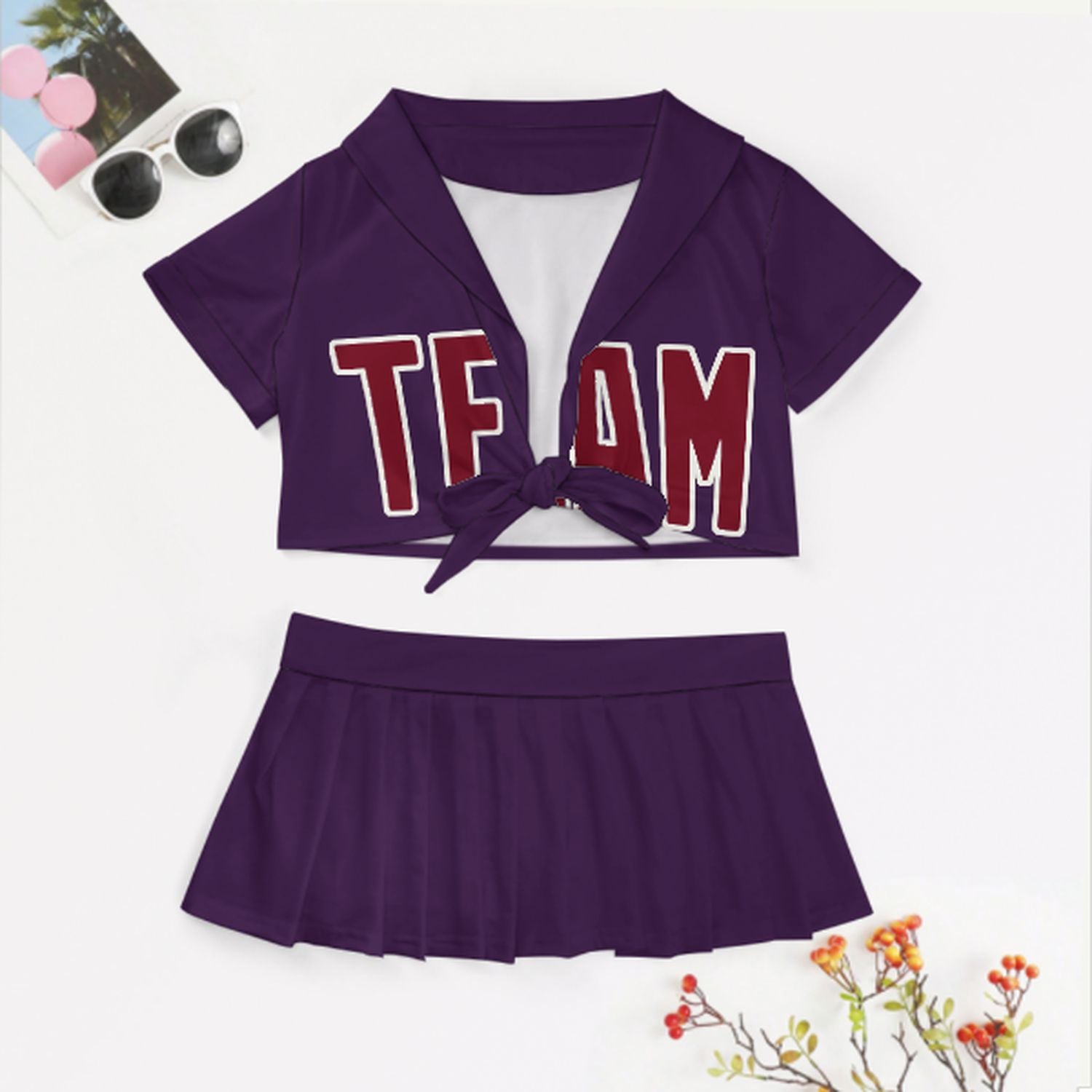Maßgeschneidertes Lila Karmesinrot Cheerleader Outfit Set