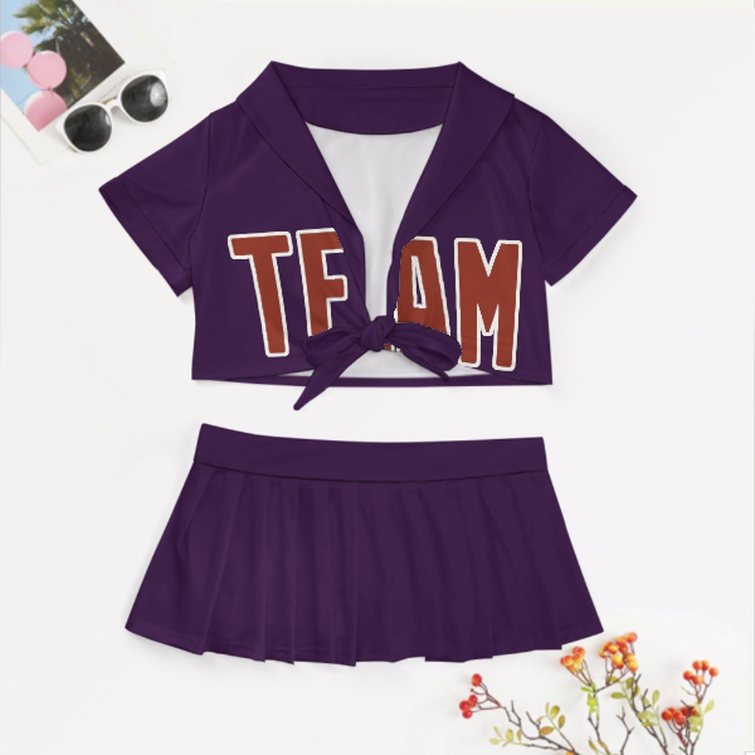 Sportliches und feminines Cheerleader Outfit Set aus atmungsaktivem Polyester mit figurbetontem Schnitt, ideal für Auftritte, Partys und Geschenke.