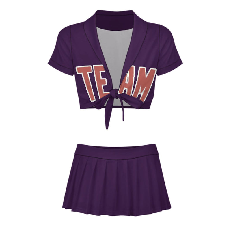 Maßgeschneidertes Lila Kupferrose Cheerleader Outfit Set