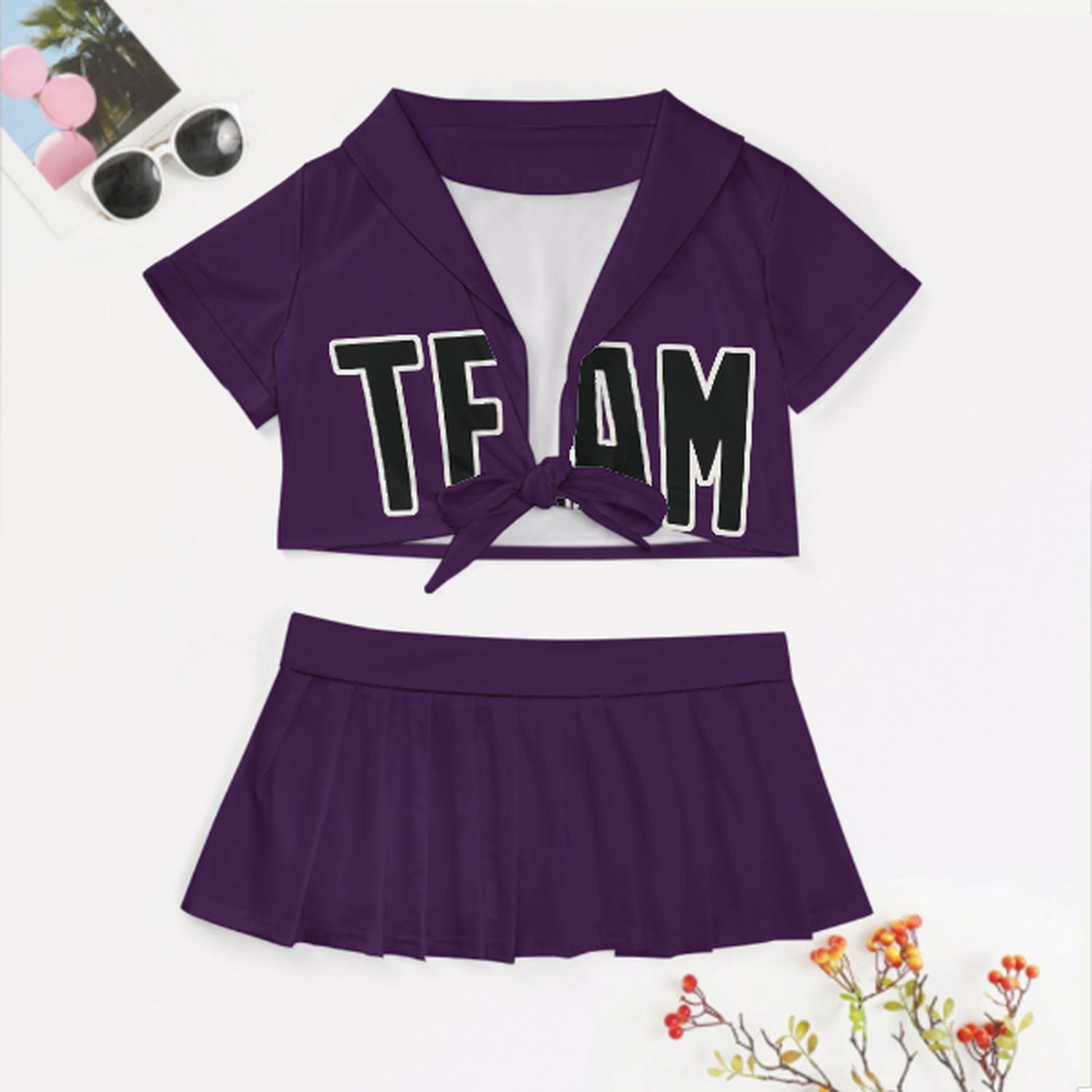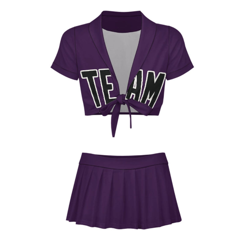 Maßgeschneidertes Lila Schwarz Cheerleader Outfit Set