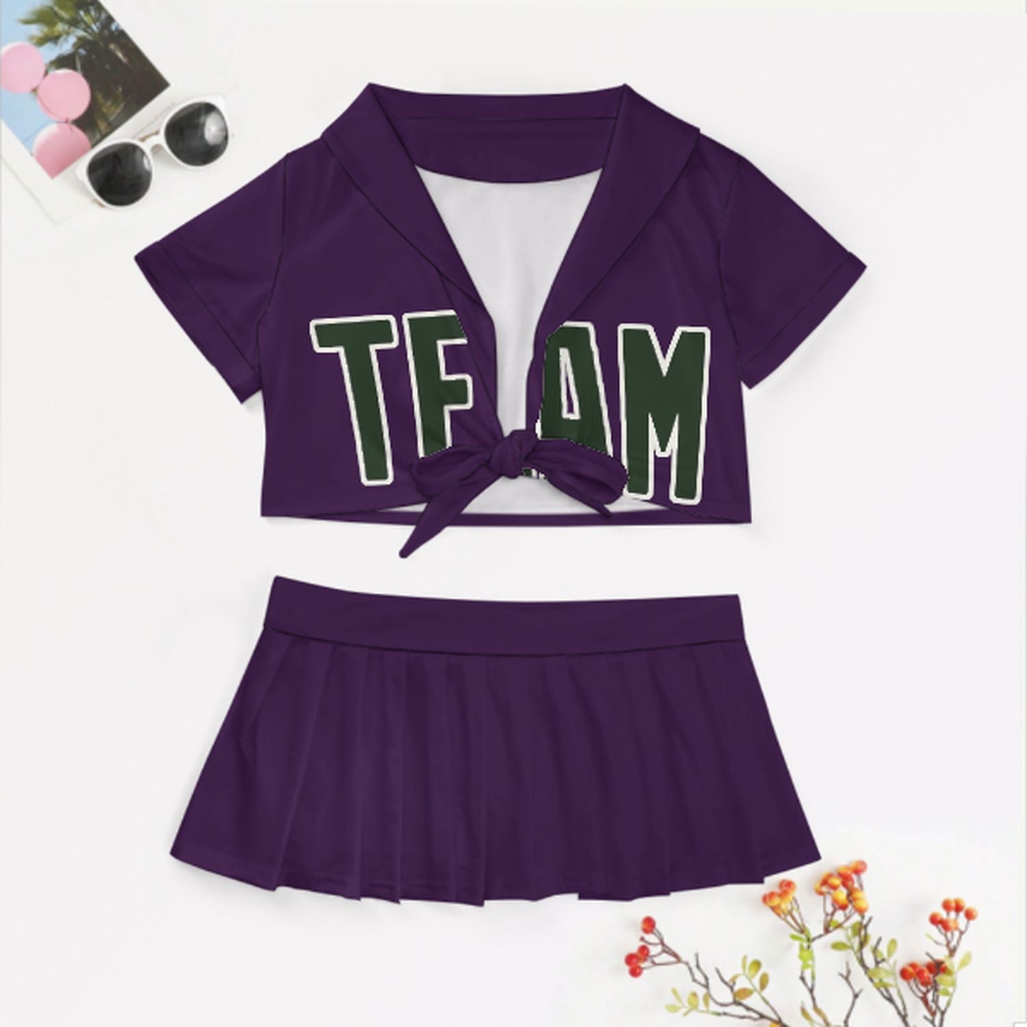 Maßgeschneidertes Lila Tannengrün Cheerleader Outfit Set