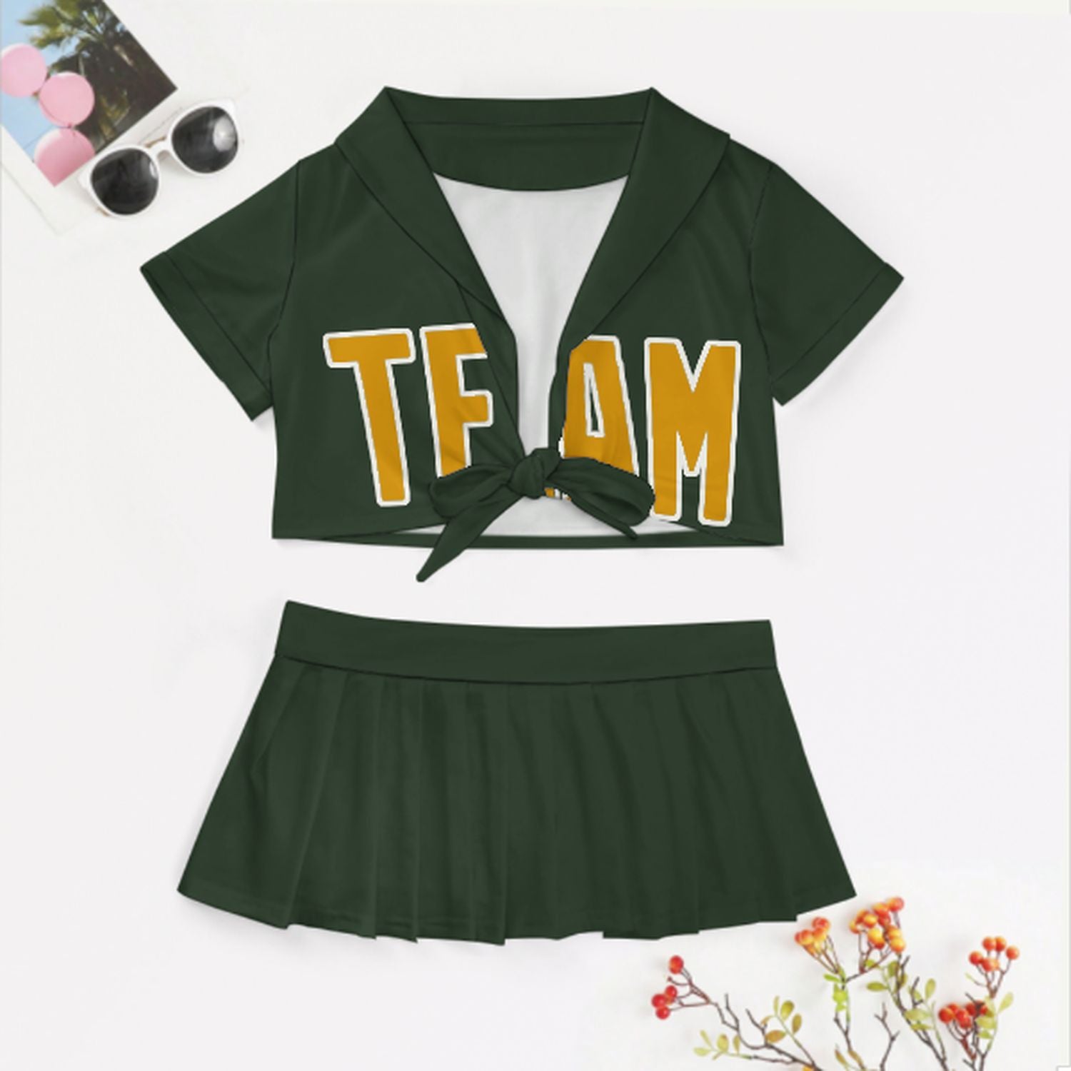 Maßgeschneidertes Tannengrün Gelb Cheerleader Outfit Set