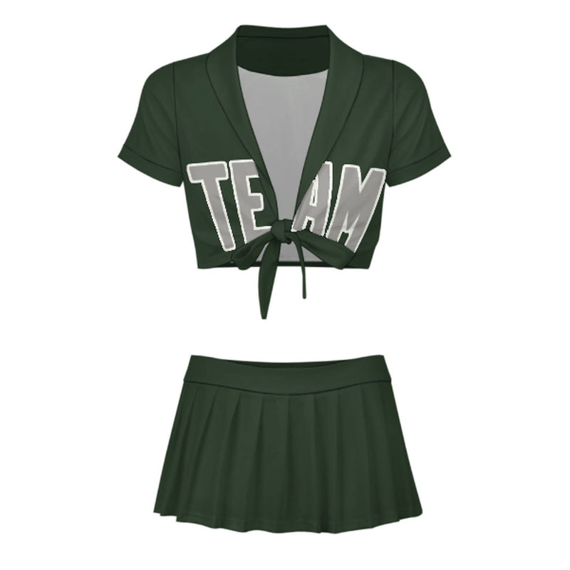 Maßgeschneidertes Tannengrün Grau Cheerleader Outfit Set