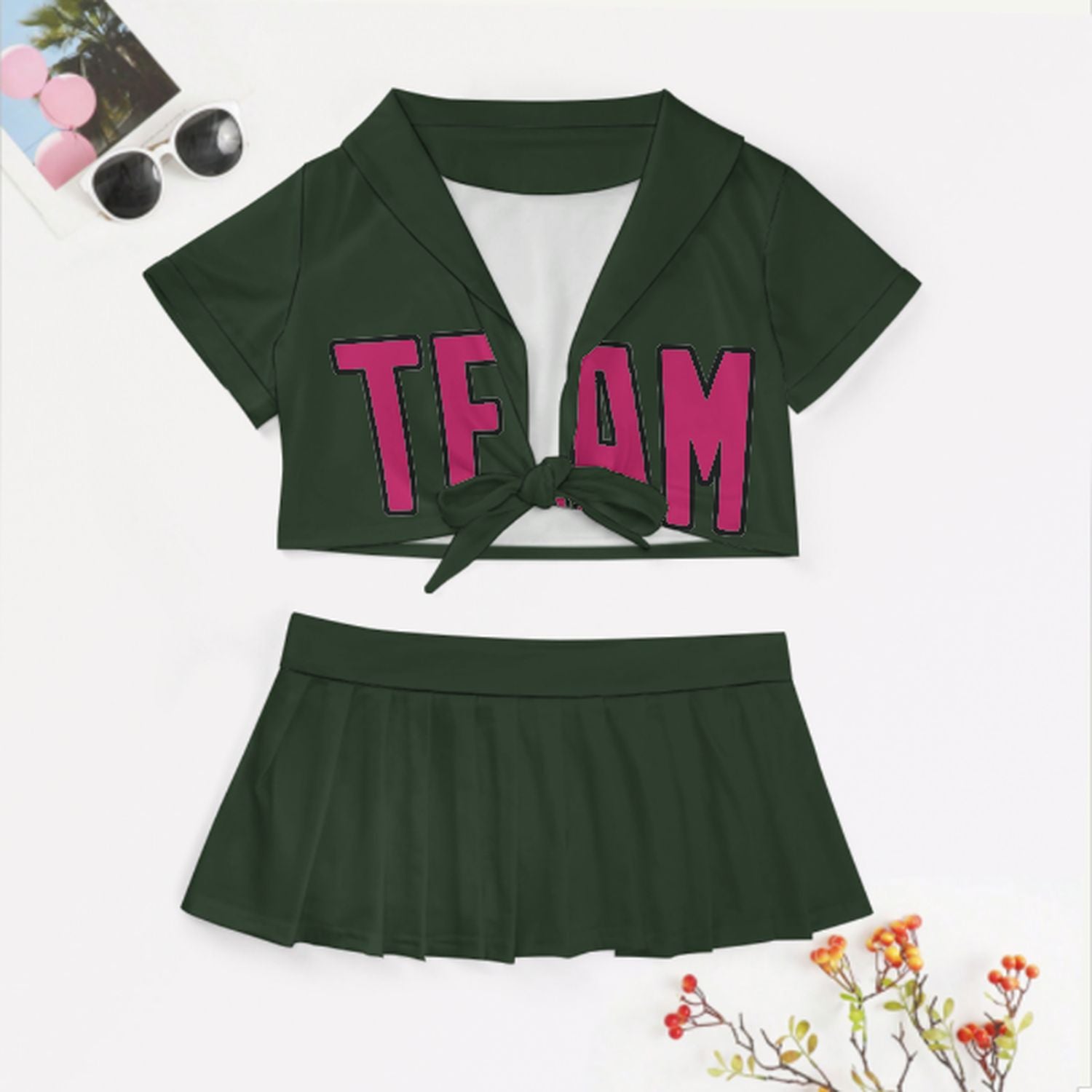 Maßgeschneidertes Tannengrün Rosarot Cheerleader Outfit Set