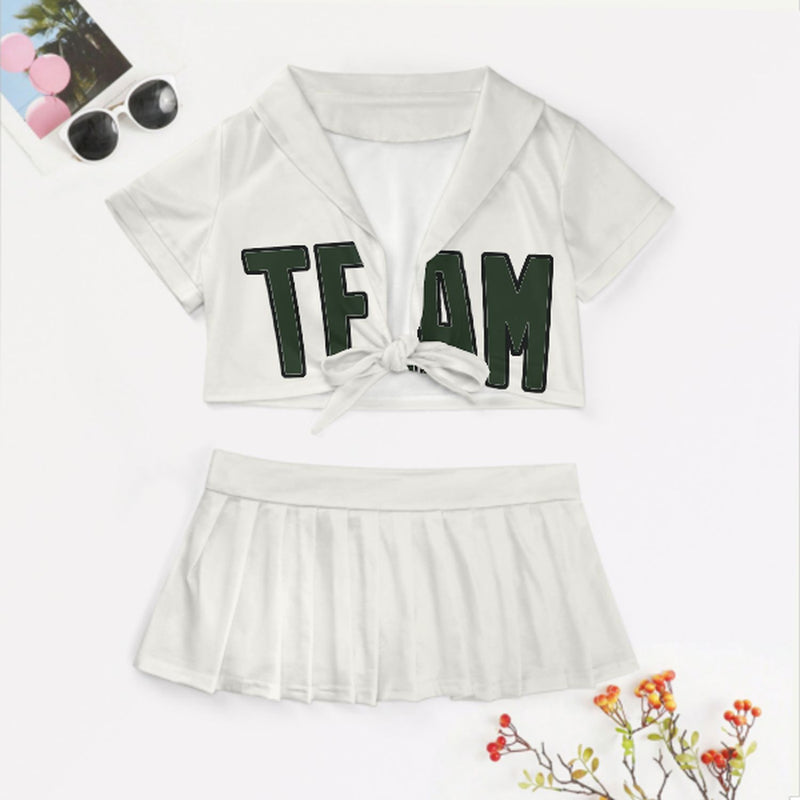 Maßgeschneidertes Weiß Tannengrün Cheerleader Outfit Set