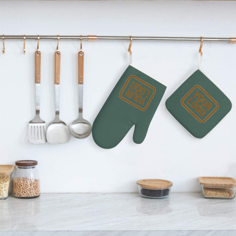 Maßgeschneidertes Blaugrün Khaki Topfhandschuh Set – 2-teilig