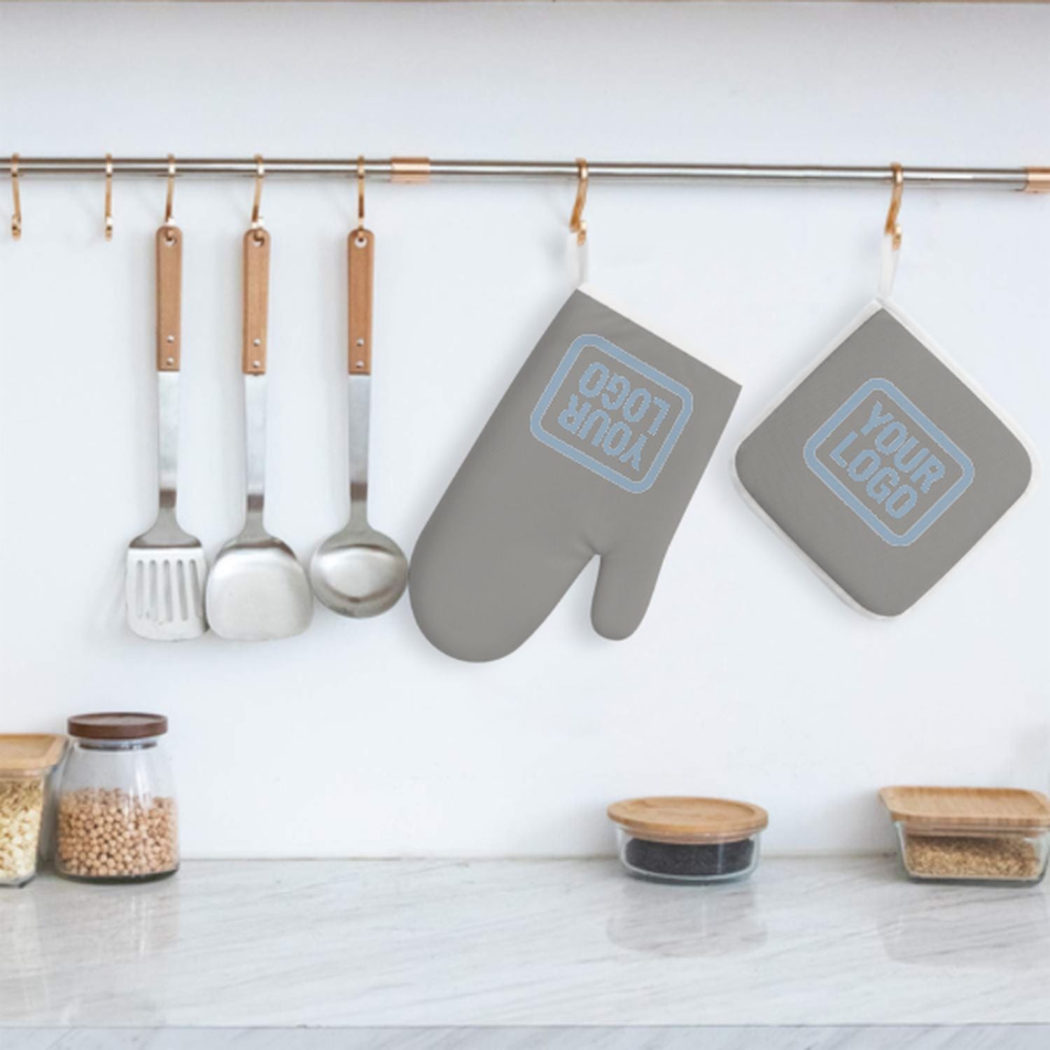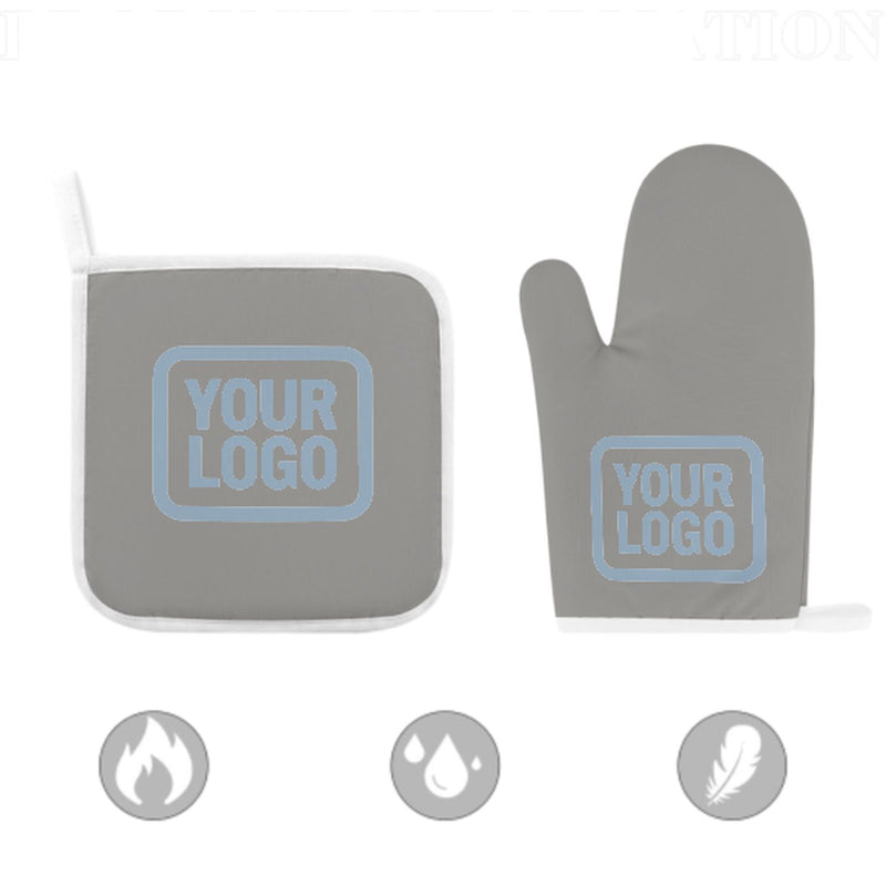 Maßgeschneidertes Grau Hellblau Topfhandschuh Set – 2-teilig