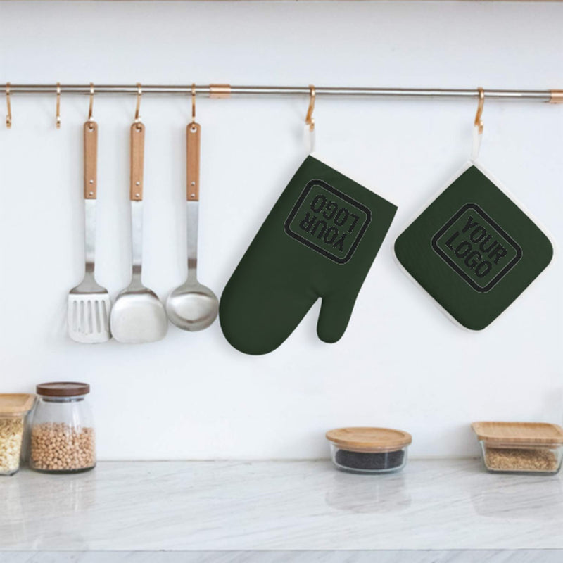 Maßgeschneidertes Tannengrün Schwarz Topfhandschuh Set – 2-teilig
