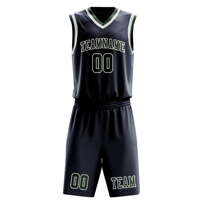 Benutzerdefiniertes Professionelles Marineblau Tannengrün Basketballtrikot-Set
