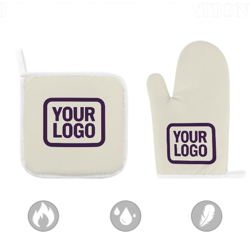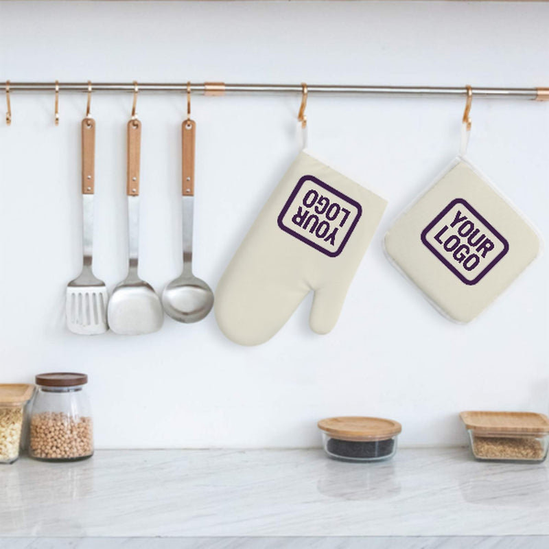 Ein stilvolles, hitzebeständiges 2-teiliges Topfhandschuh-Set aus robustem Polyestergewebe, ideal für Sicherheit und Komfort beim Kochen und Backen.
