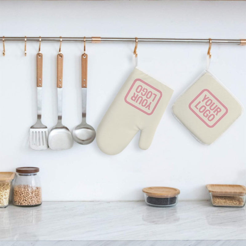 Ein stilvolles, hitzebeständiges 2-teiliges Topfhandschuh-Set aus robustem Polyestergewebe, ideal für Sicherheit und Komfort beim Kochen und Backen.