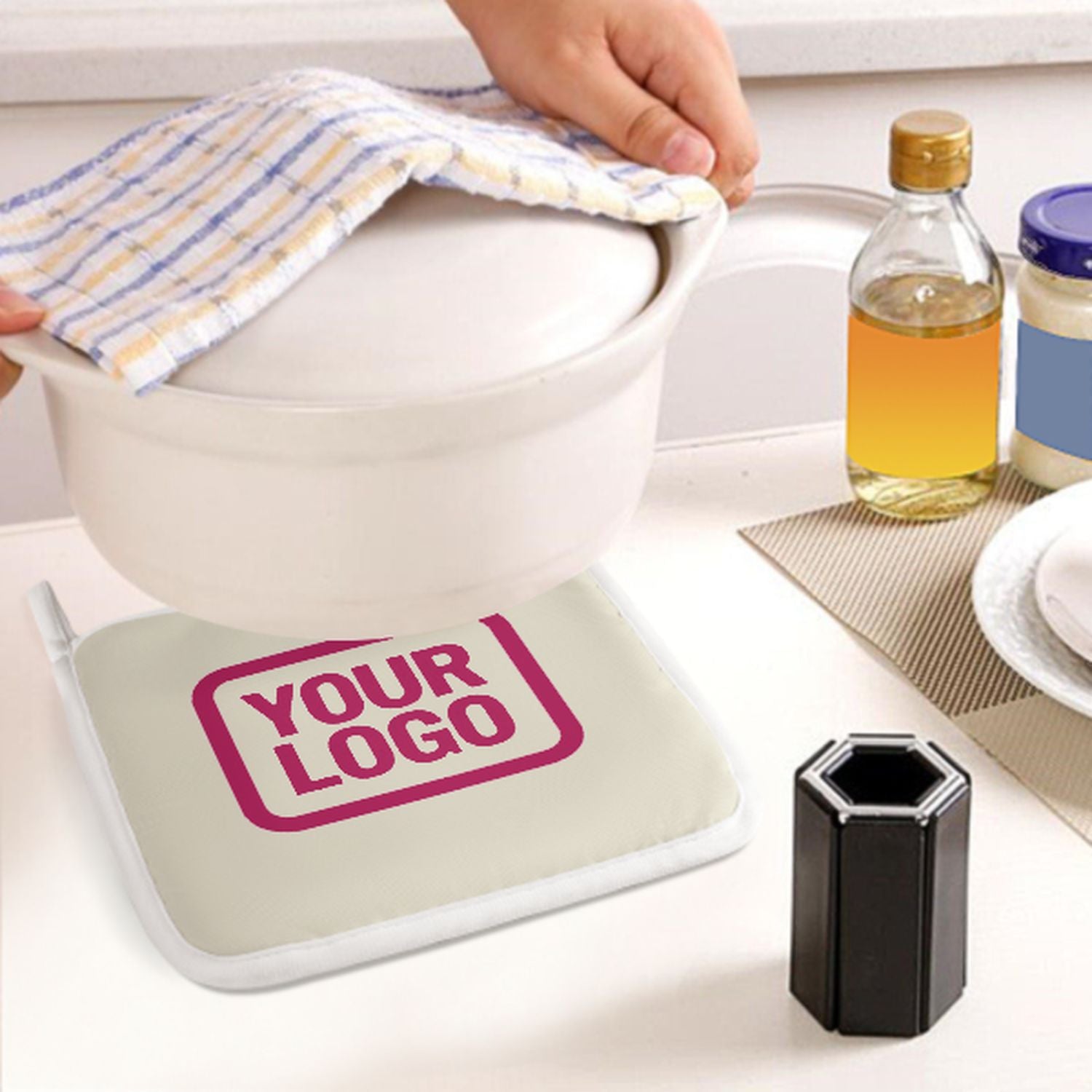 • Hitzeschutz: Verdickte Naturfaser-Isolierung schützt sicher vor heißen Töpfen und Backformen.