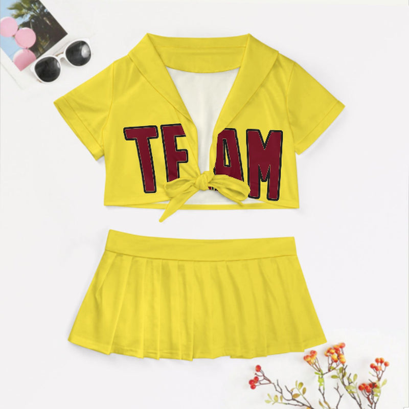 Maßgeschneidertes Blassgelb Karmesinrot Cheerleader Outfit Set