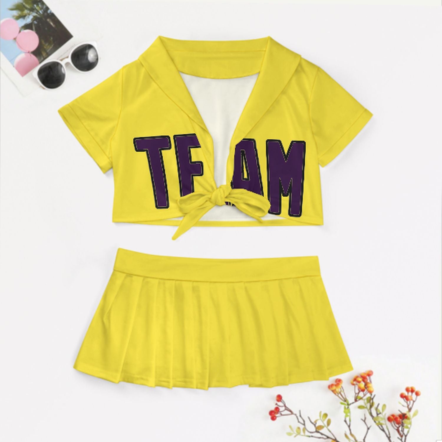 Maßgeschneidertes Blassgelb Lila Cheerleader Outfit Set