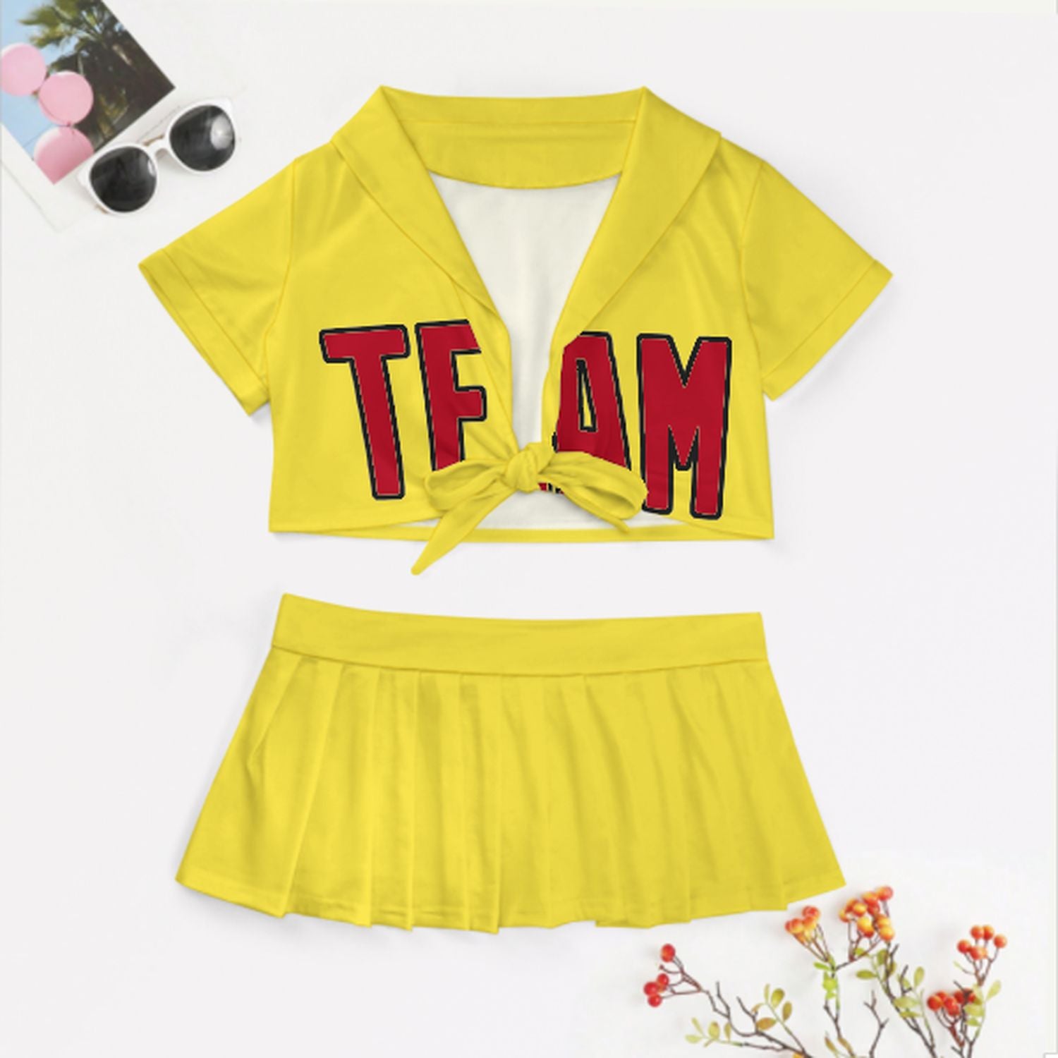 Maßgeschneidertes Blassgelb Rot Cheerleader Outfit Set