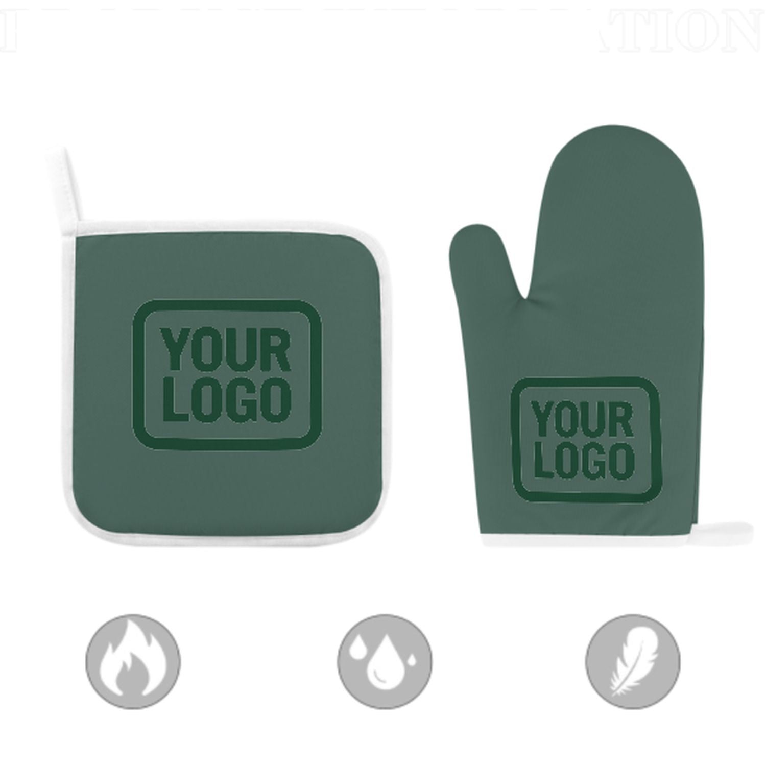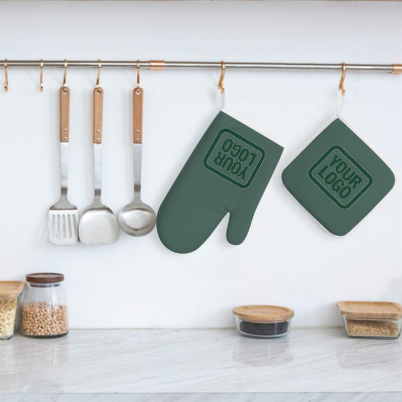 Ein stilvolles, hitzebeständiges 2-teiliges Topfhandschuh-Set aus robustem Polyestergewebe, ideal für Sicherheit und Komfort beim Kochen und Backen.