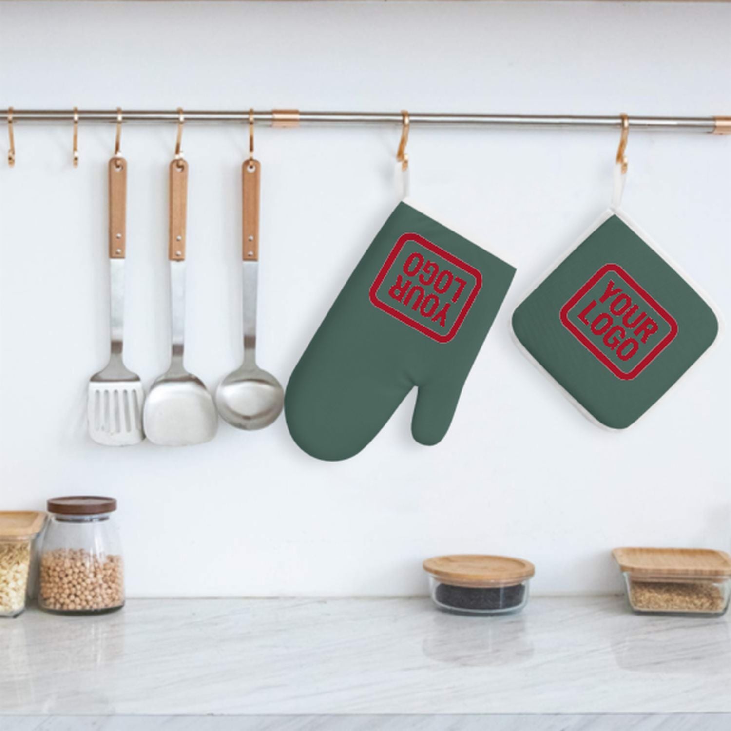 Maßgeschneidertes Blaugrün Rot Topfhandschuh Set – 2-teilig