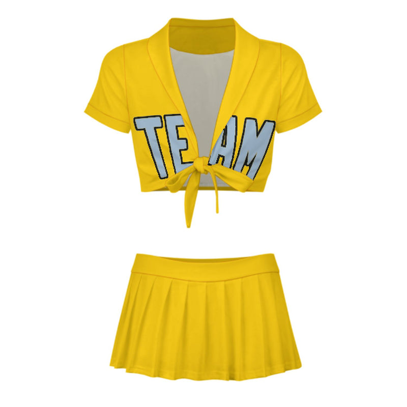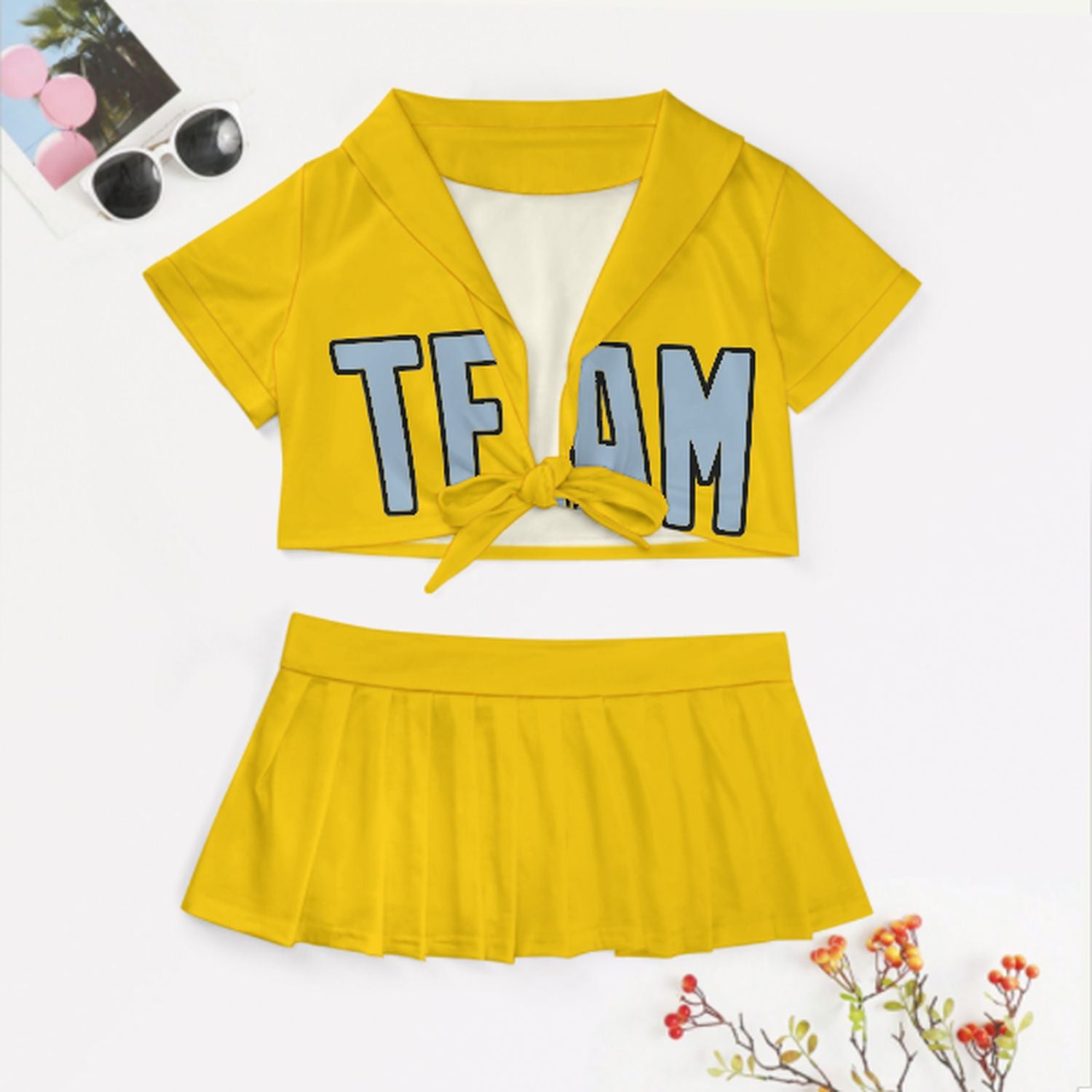 Maßgeschneidertes Gold Hellblau Cheerleader Outfit Set