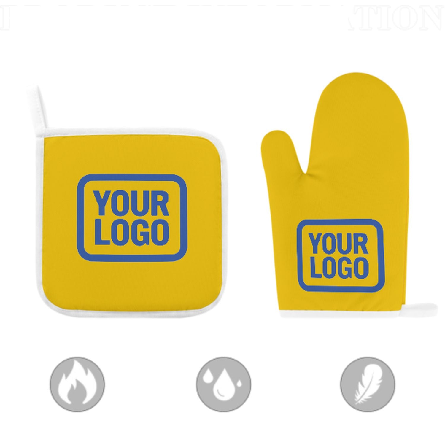 Maßgeschneidertes Gold Himmelblau Topfhandschuh Set – 2-teilig