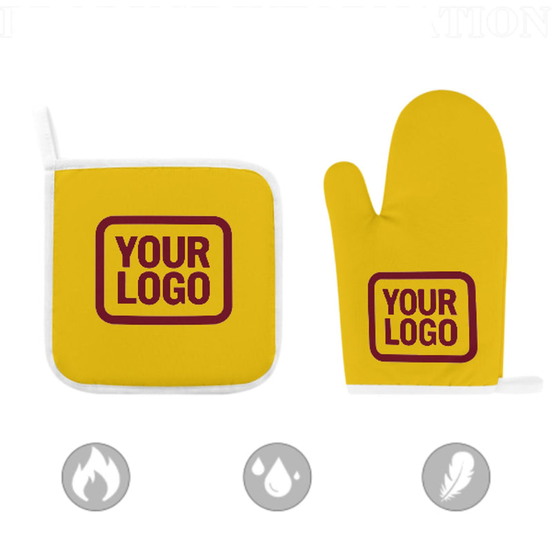 Maßgeschneidertes Gold Karmesinrot Topfhandschuh Set – 2-teilig