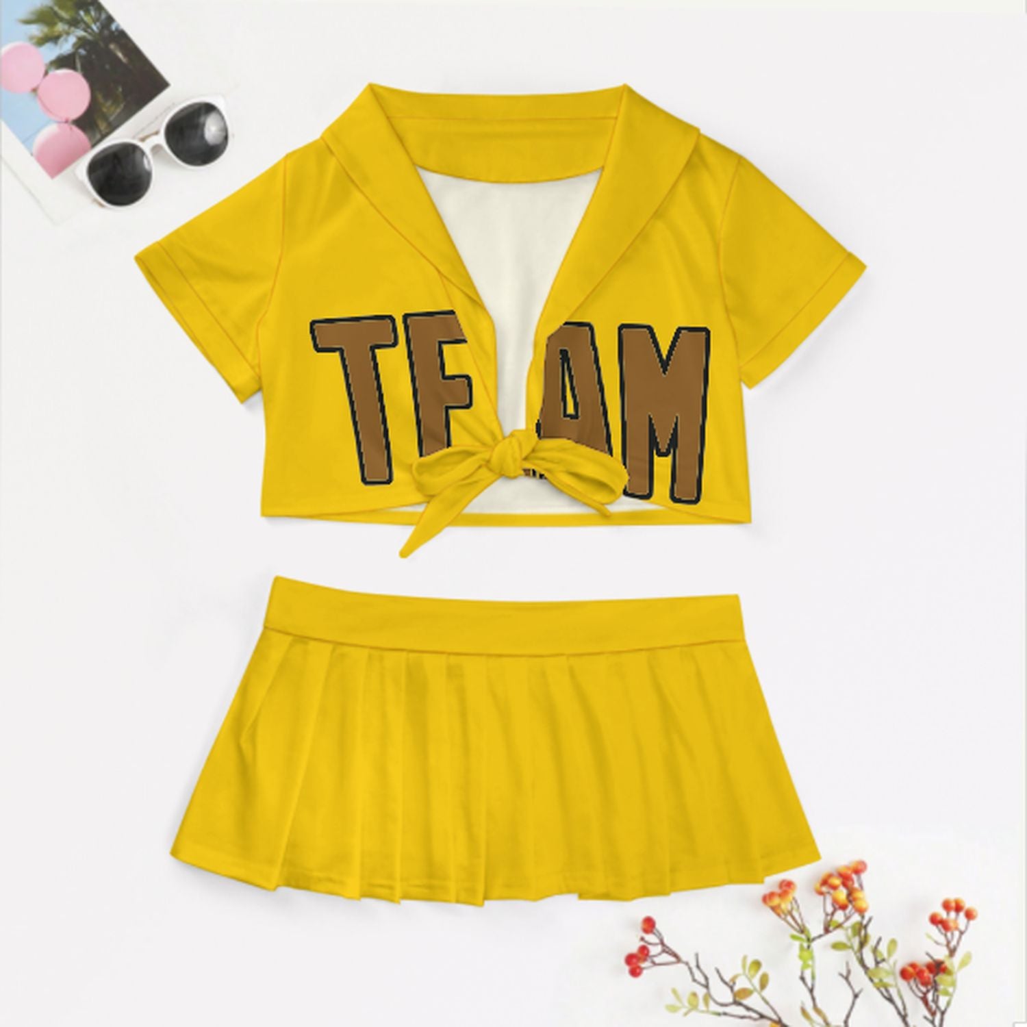 Maßgeschneidertes Gold Khaki Cheerleader Outfit Set