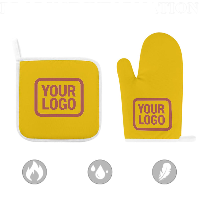 Ein stilvolles, hitzebeständiges 2-teiliges Topfhandschuh-Set aus robustem Polyestergewebe, ideal für Sicherheit und Komfort beim Kochen und Backen.