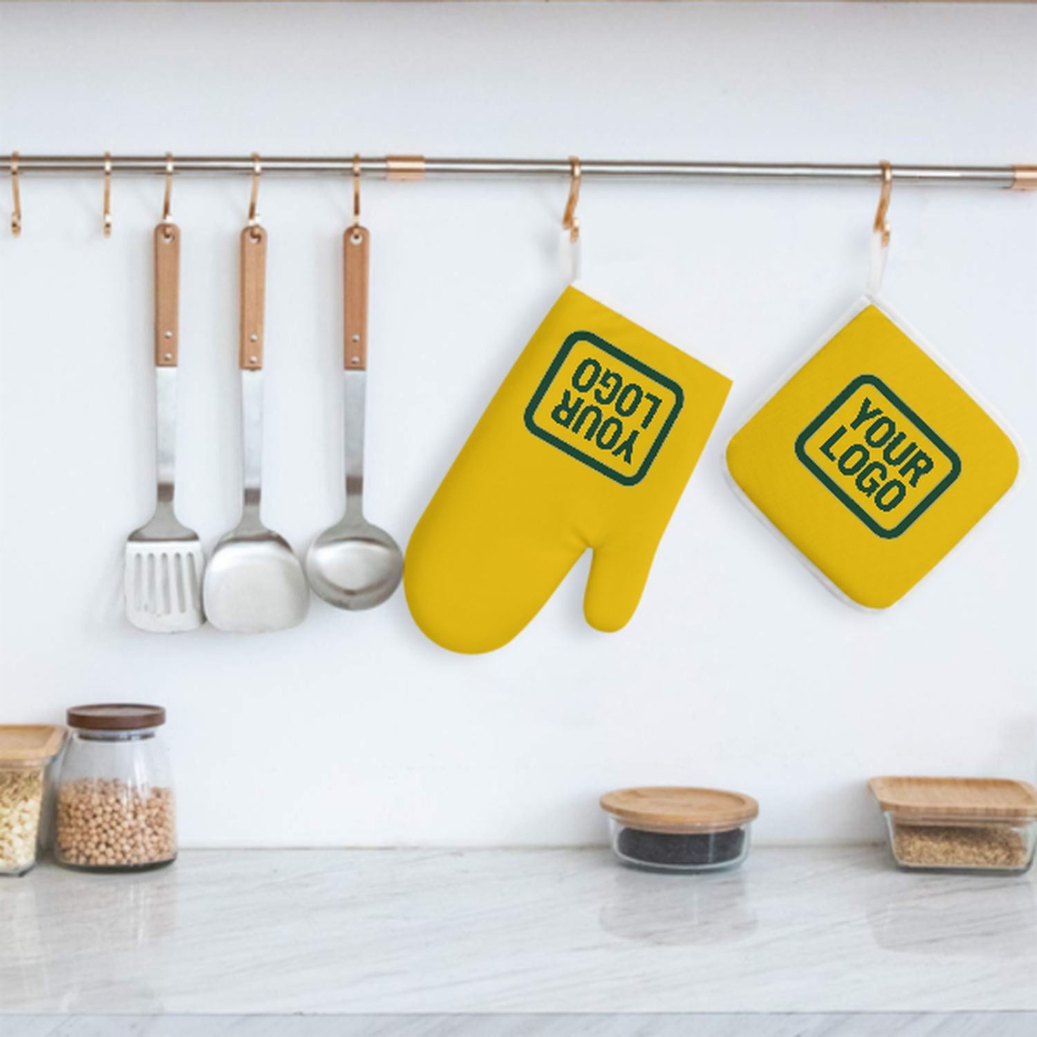 Ein stilvolles, hitzebeständiges 2-teiliges Topfhandschuh-Set aus robustem Polyestergewebe, ideal für Sicherheit und Komfort beim Kochen und Backen.