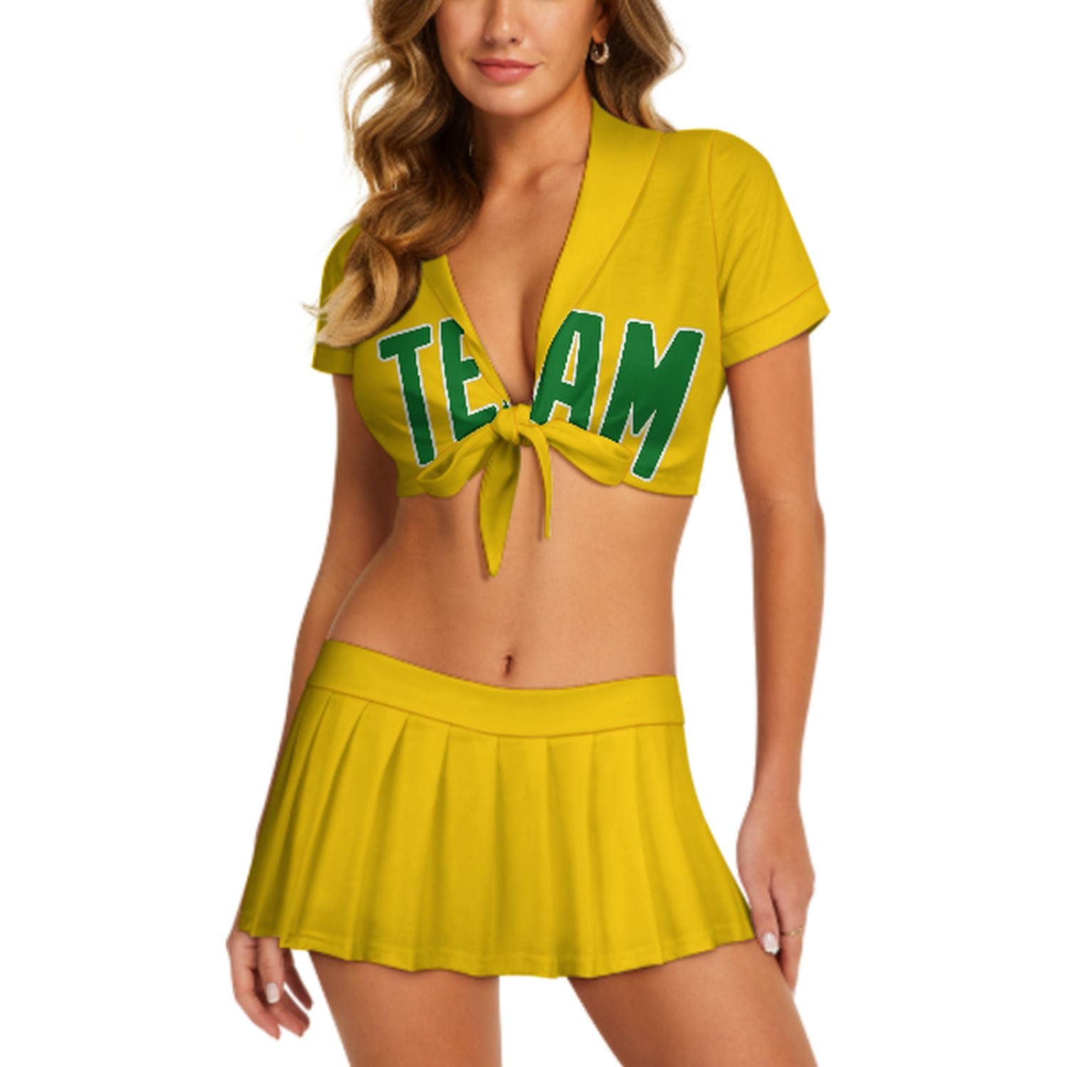 Maßgeschneidertes Gold Smaragdgrün Cheerleader Outfit Set