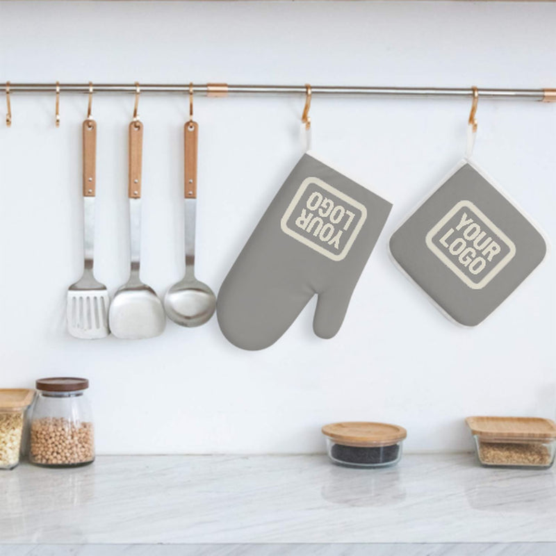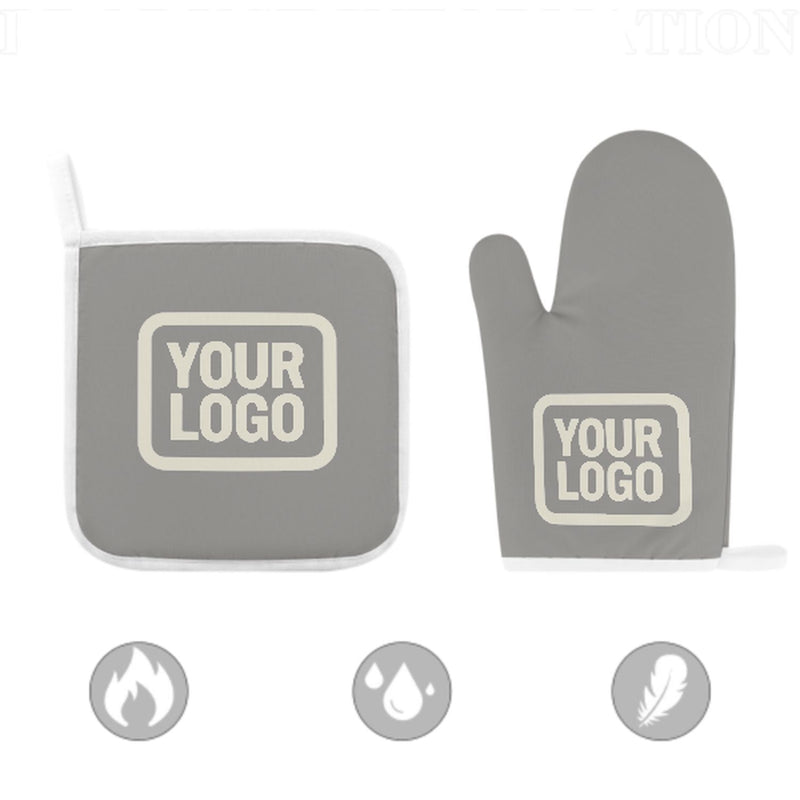 Maßgeschneidertes Grau Beige Topfhandschuh Set – 2-teilig