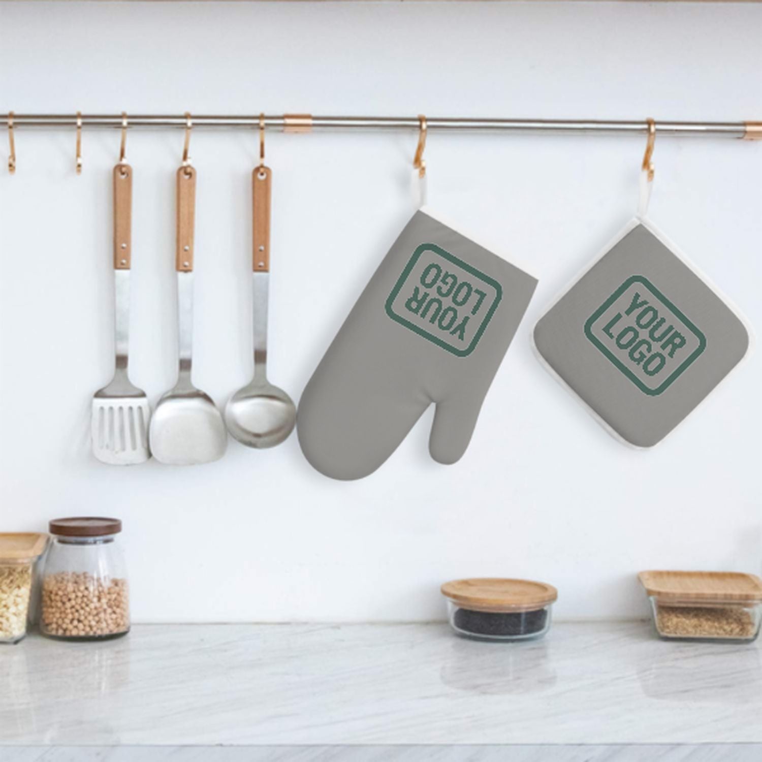 Maßgeschneidertes Grau Blaugrün Topfhandschuh Set – 2-teilig