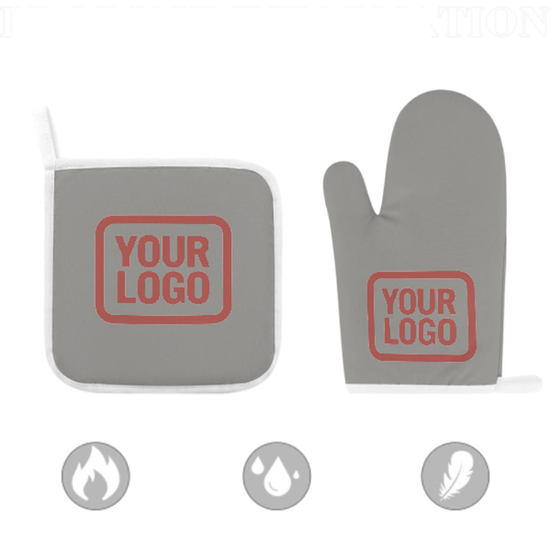 Ein stilvolles, hitzebeständiges 2-teiliges Topfhandschuh-Set aus robustem Polyestergewebe, ideal für Sicherheit und Komfort beim Kochen und Backen.