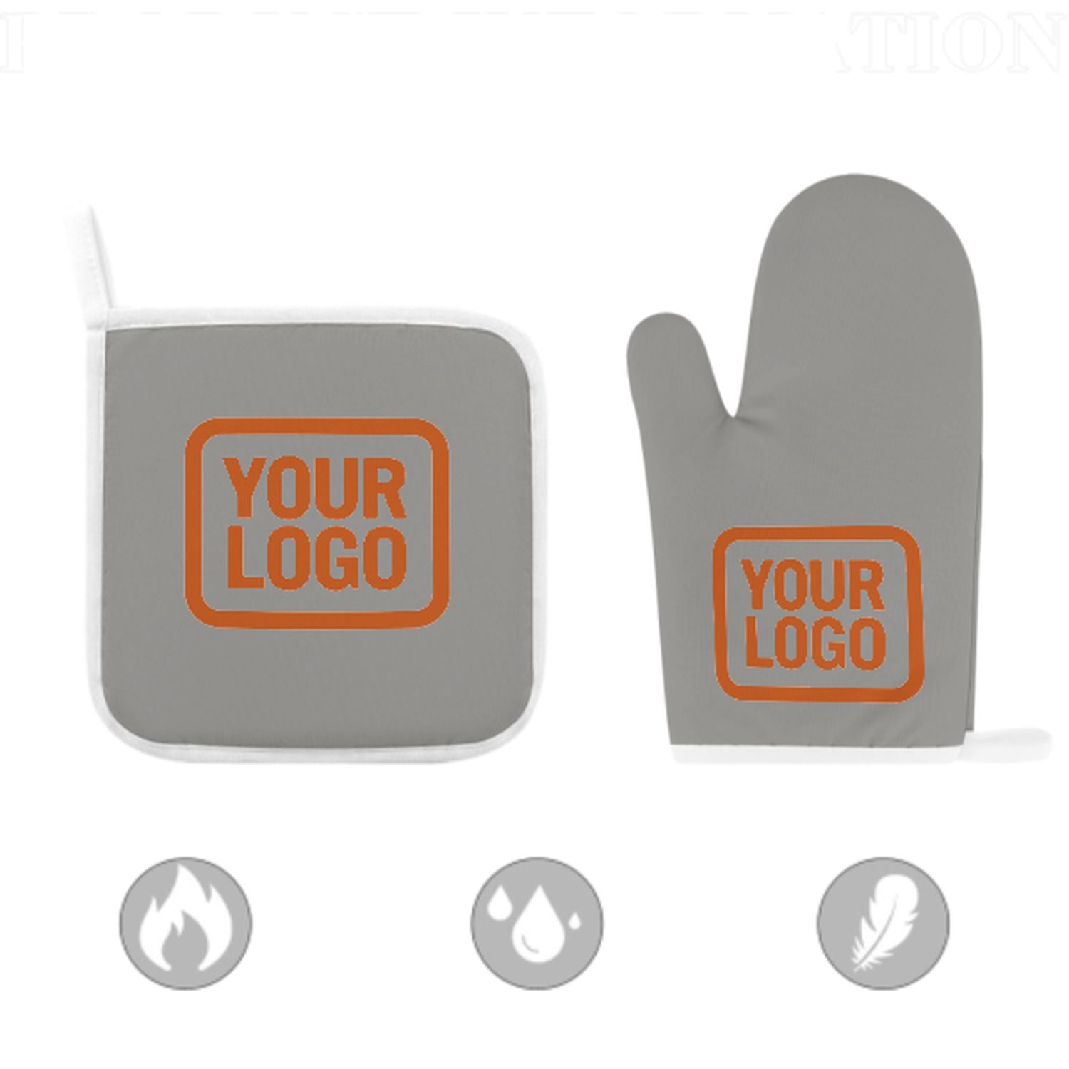 Maßgeschneidertes Grau Orange Topfhandschuh Set – 2-teilig