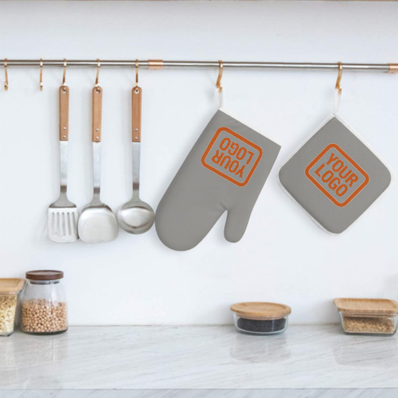 Ein stilvolles, hitzebeständiges 2-teiliges Topfhandschuh-Set aus robustem Polyestergewebe, ideal für Sicherheit und Komfort beim Kochen und Backen.