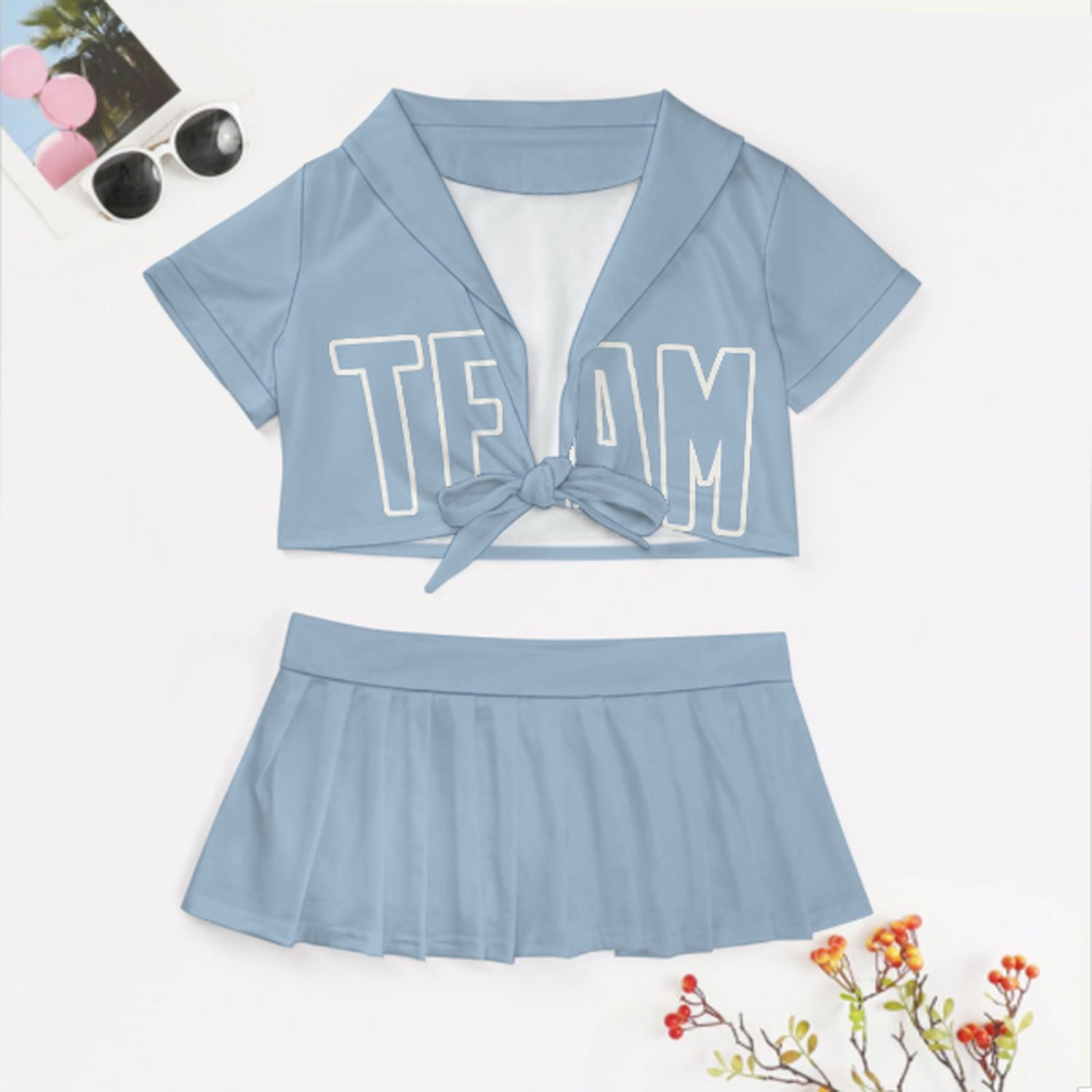 Maßgeschneidertes Hellblau Hellblau Cheerleader Outfit Set
