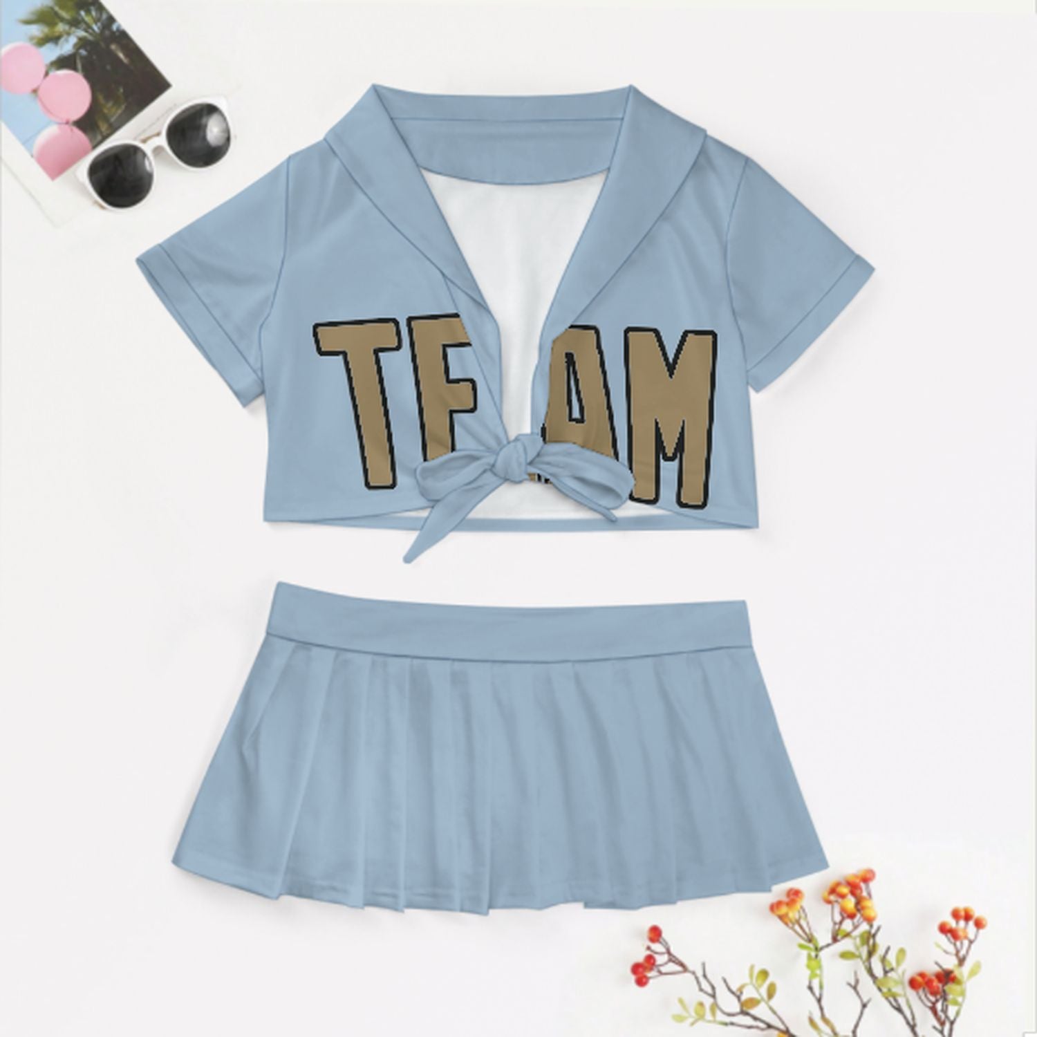 Maßgeschneidertes Hellblau Hellkhaki Cheerleader Outfit Set