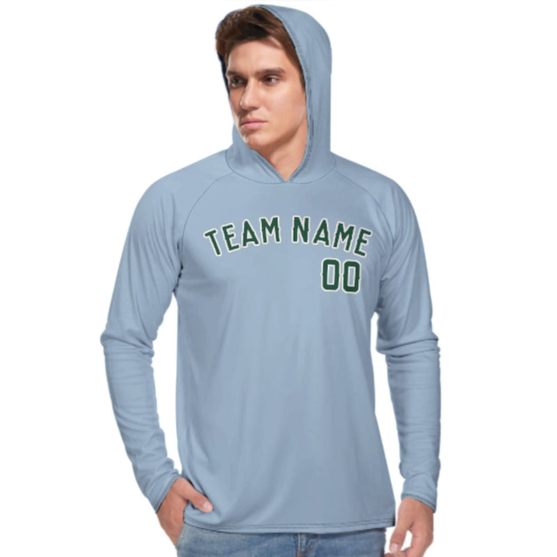 Maßgeschneidertes Hellblau Moosgrün UV-Hoodie